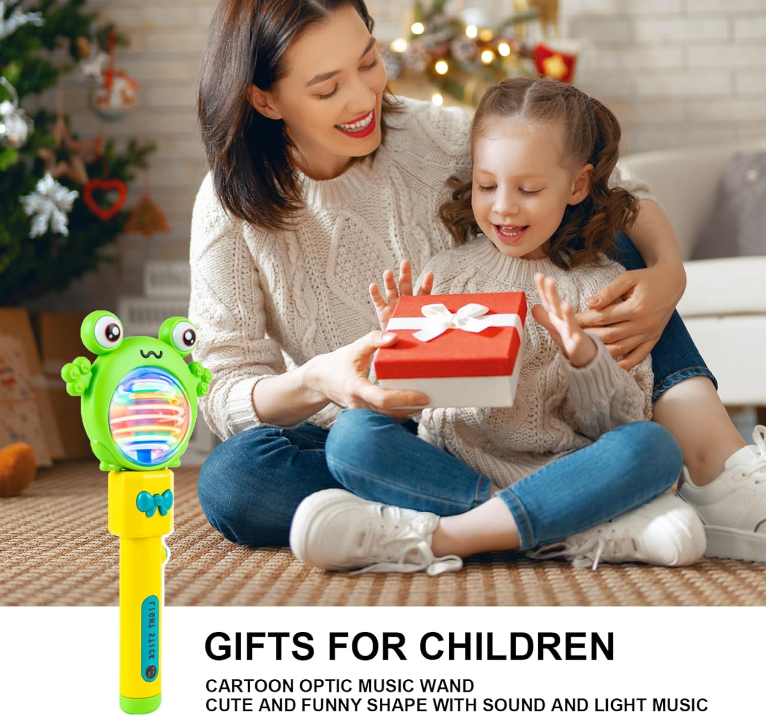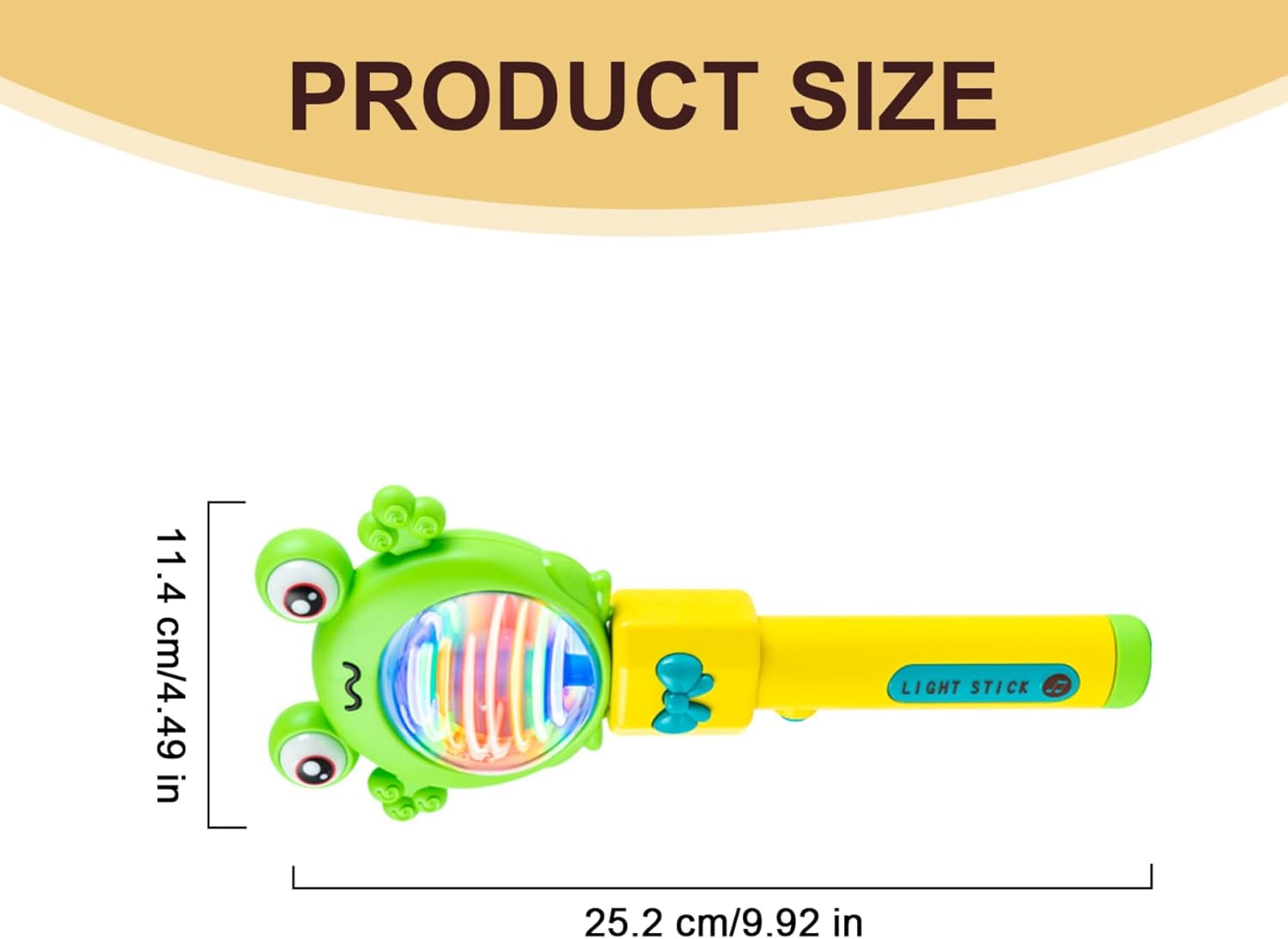 Gioco divertente e interattivo: coinvolgi tuo figlio nel divertimento interattivo con queste bacchette luminose che riproducono musica, offrendo un'esperienza sensoriale emozionante..Perfetto per i bambini che amano luci e suoni combinati! Luci rotanti: le luci rotanti creano effetti affascinanti, attirando l'attenzione dei bambini..Ideale per il gioco sensoriale, questo giocattolo visivo dinamico intrattiene e aiuta a migliorare le sue capacità motorie attraverso il movimento. Alimentata a batteria: non sono necessari cavi o spine: questa bacchetta magica alimentata a batteria garantisce un divertimento senza fine, a casa, al parco o durante il viaggio..Perfetto per l'intrattenimento in movimento senza il fastidio di ricaricare. Ideale per i compleanni: Cerchi il compleanno perfetto?.Questa bacchetta magica luminosa a forma di rana con musica è un regalo fantastico che unisce divertimento, creatività e intrattenimento, rendendola un successo in ogni celebrazione. Design a forma di rana: caratterizzata da un grazioso design a forma di rana, questa bacchetta luminosa è vibrante e giocosa e suscita gioia in ogni bambino..Il suo aspetto unico e le luci rotanti lo rendono un accessorio divertente e accattivante per il gioco.