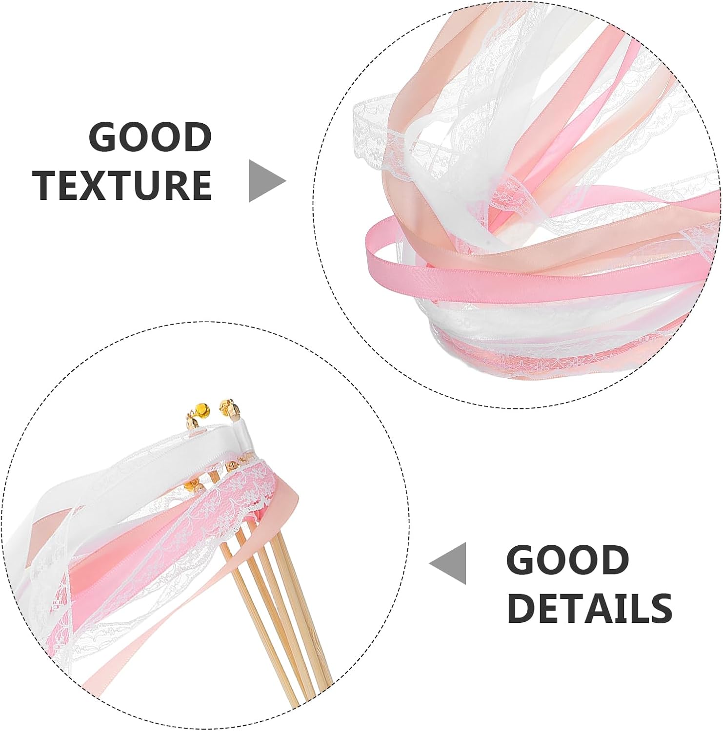 Artigianato raffinato: l'intricato design in pizzo di queste bacchette aggiunge un tocco romantico, rendendole un accessorio eccezionale per matrimoni ed eventi speciali Seta morbida e resistente: realizzate con nastri di seta, queste bacchette sono morbide al tatto e resistenti, garantendo che mantengano la loro bellezza per tutta la durata della celebrazione Adatto per occasioni festive: matrimoni ai baby shower e alle feste di Natale, queste bacchette sono una decorazione versatile che porta gioia ed a qualsiasi evento Facili da trasportare ovunque: leggere e compatte, queste bacchette sono facili da trasportare, il che le rende ideali per creare un'atmosfera romantica in luoghi all'aperto come o spiagge Accessorio memorabile per l'evento: queste bacchette non solo migliorano l'atmosfera del tuo evento, ma servono anche come un bellissimo ricordo che gli ospiti potranno custodire a lungo dopo la celebrazione