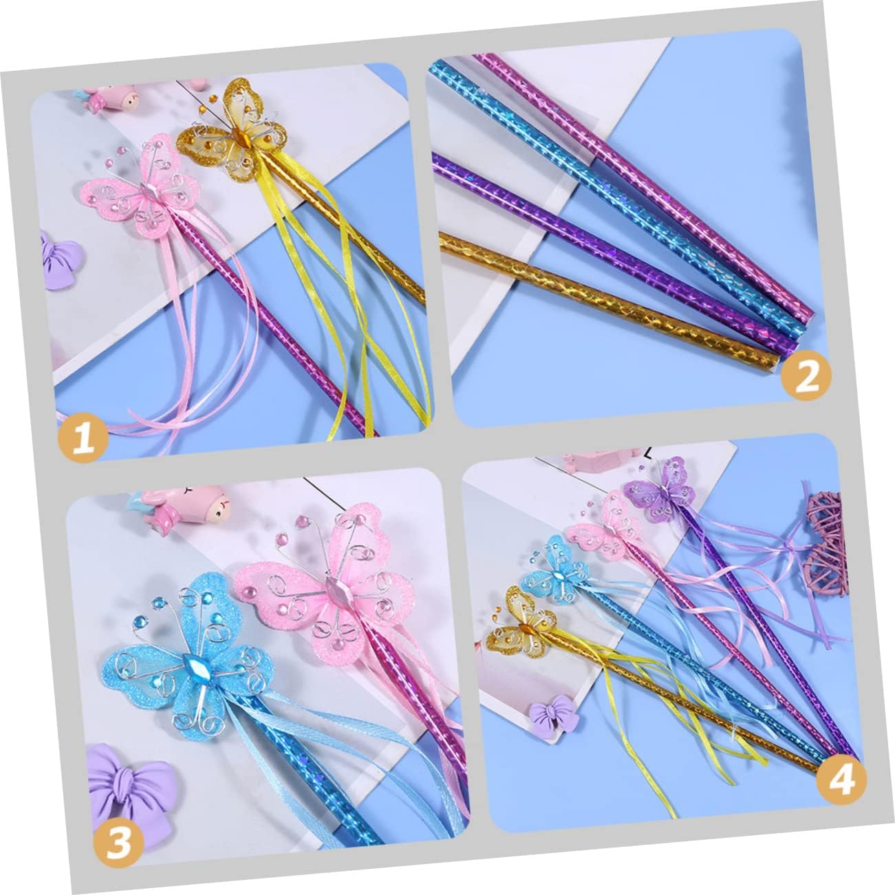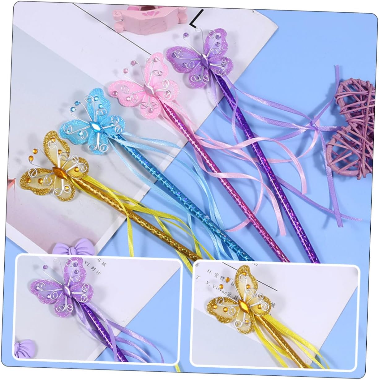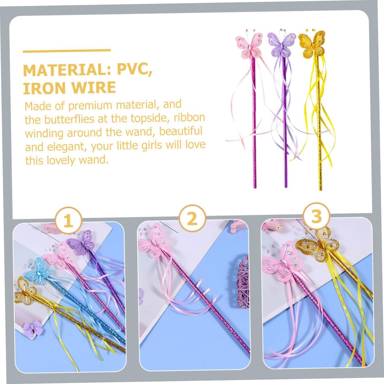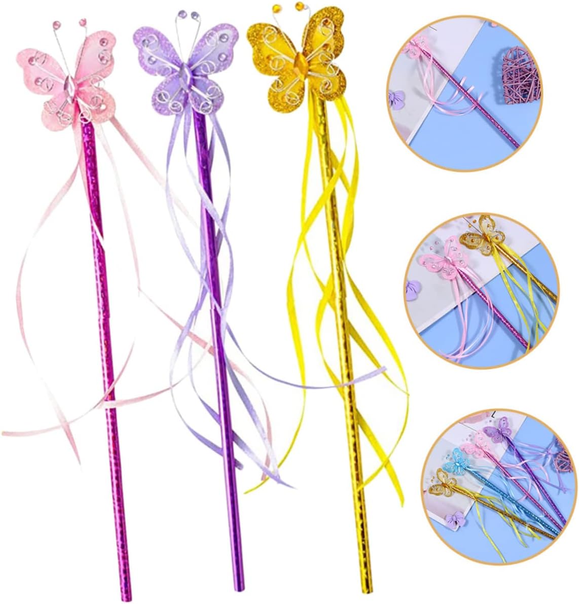 Bacchette magiche per feste: a forma di farfalla, molto carine e creative, rendile il centro della festa, giocattoli bacchetta magica Bacchetta magica per ragazze: i nastri si abbinano all'incantevole decorazione a farfalla e sono sia una decorazione per la festa che un accessorio per costumi Bacchetta magica per il palcoscenico: lavorazione, sicura e realizzata in PVC e ferro, semplice e generosa, supporta il tuo uso a lungo termine, bacchetta magica per ragazze Bacchette magiche per: perfettamente tagliate con superfici pulite e bordi lisci, non danneggeranno il tuo bambino e potrai usarle con molta più sicurezza, Bacchetta magica giocattolo per bambini per: si abbina a molti stili di abbigliamento diversi e la rende ancora più carina. bacchette magiche per bambine