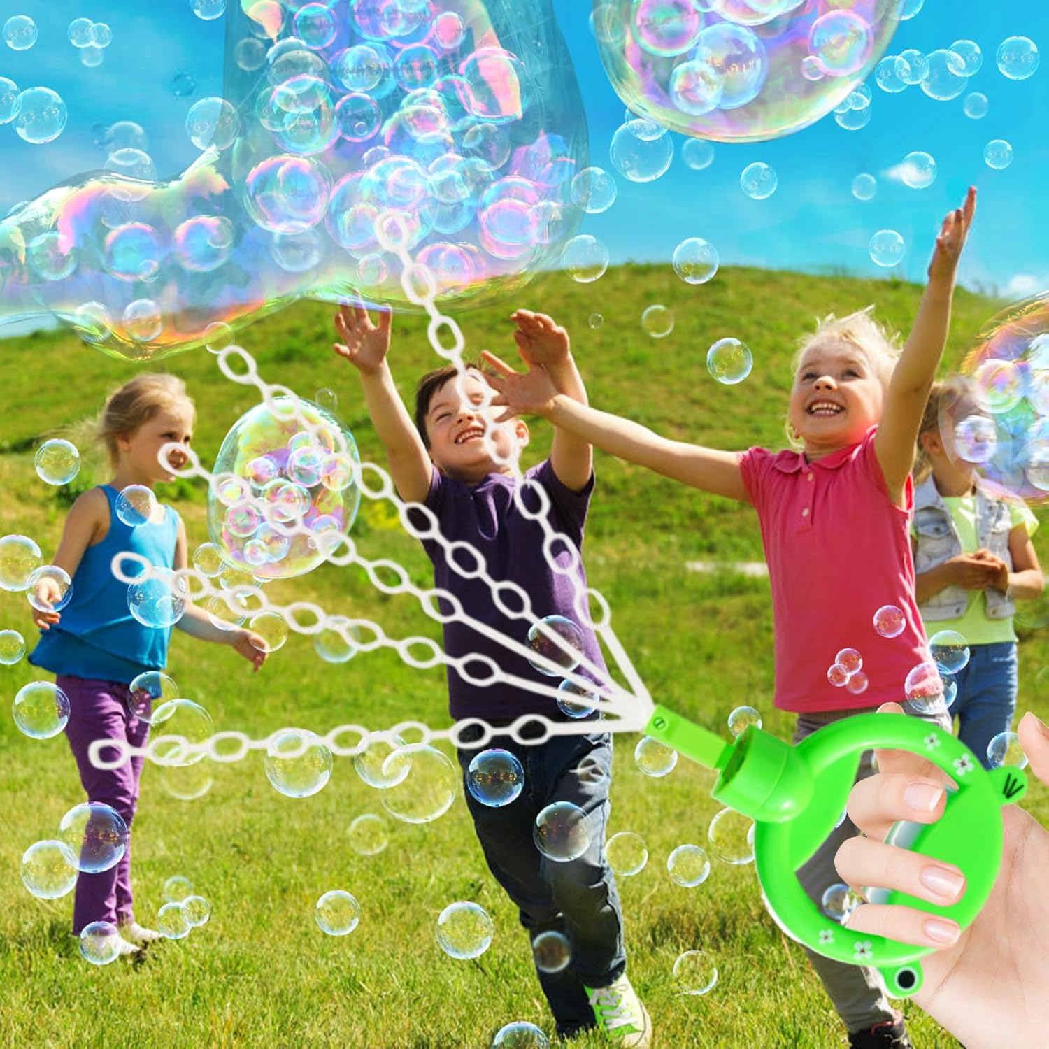 Ore di intrattenimento: basta scuoterla con le mani e lasciare che l' accada: guarda come la Bubble Wand si trasforma in un colorato paese delle meraviglie delle bolle, offrendo più intrattenimento ai bambini. Progettato per suscitare gioia nelle mani dei bambini Protezione per le mani dei bambini: realizzato in robusto materiale ABS che non sbiadisce o si deforma facilmente, il nostro giocattolo con la bacchetta è sicuro, robusto e offre più intrattenimento per i bambini Regalo creativo: ispira il bambino con questo giocattolo con la bacchetta , adatto per creare affascinanti bolle in occasioni speciali come compleanni, festa dei bambini e regali di Natale Vasta applicazione: solleva qualsiasi evento speciale con questo giocattolo con bacchetta , un must per matrimoni, feste di compleanno, vacanze al mare e di famiglia, aggiungendo gioia ad ogni momento Porta il fascino delle bolle agli eventi: con la bacchetta a 36 fori, divertiti a creare una miriade di bolle colorate graziose e romantiche che rendono le riunioni piene di gioia e risate per tutta la famiglia