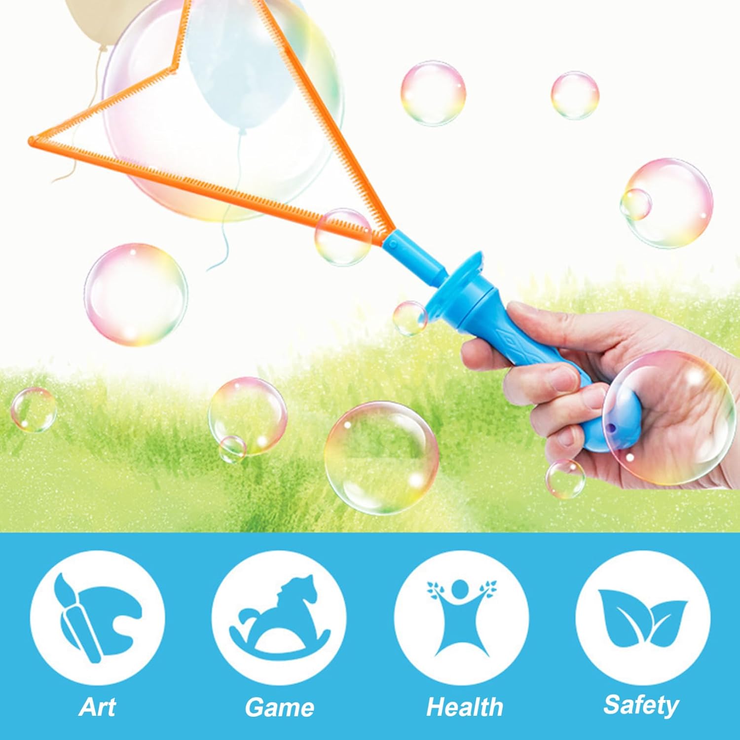 Divertimento interattivo all'aria aperta: queste bacchette bolle da 5 pezzi sono progettate per creare bolle grandi e affascinanti che affascinano i bambini e incoraggiano il gioco all'aperto, promuovendo un divertimento estivo attivo e coinvolgente Robusta qualità costruttiva: realizzati con materiali robusti e con una sicura impugnatura on-off a forma di elsa, questi bastoncini a bolle sono costruiti per durare ore di utilizzo giocoso senza rompersi o perdere Portatili e leggere: misurano 18 pollici, queste bacchette a bolle sono facili da trasportare e riporre, rendendole perfette per gite in famiglia, picnic, gite in spiaggia e avventure in giardino Facile da usare: il design a forma di V combinato con una maniglia portatile consente ai bambini di immergere e agitare le bacchette senza sforzo, producendo bolle impressionanti con il minimo sforzo, ideali per tutti i livelli di abilità Sicuri e adatti ai bambini: realizzati con materiali atossici e dotati di un design con impugnatura sicura, questi giocattoli a bolle sono sicuri per i bambini, garantendo divertimento senza preoccupazioni per i bambini e tranquillità per i genitori