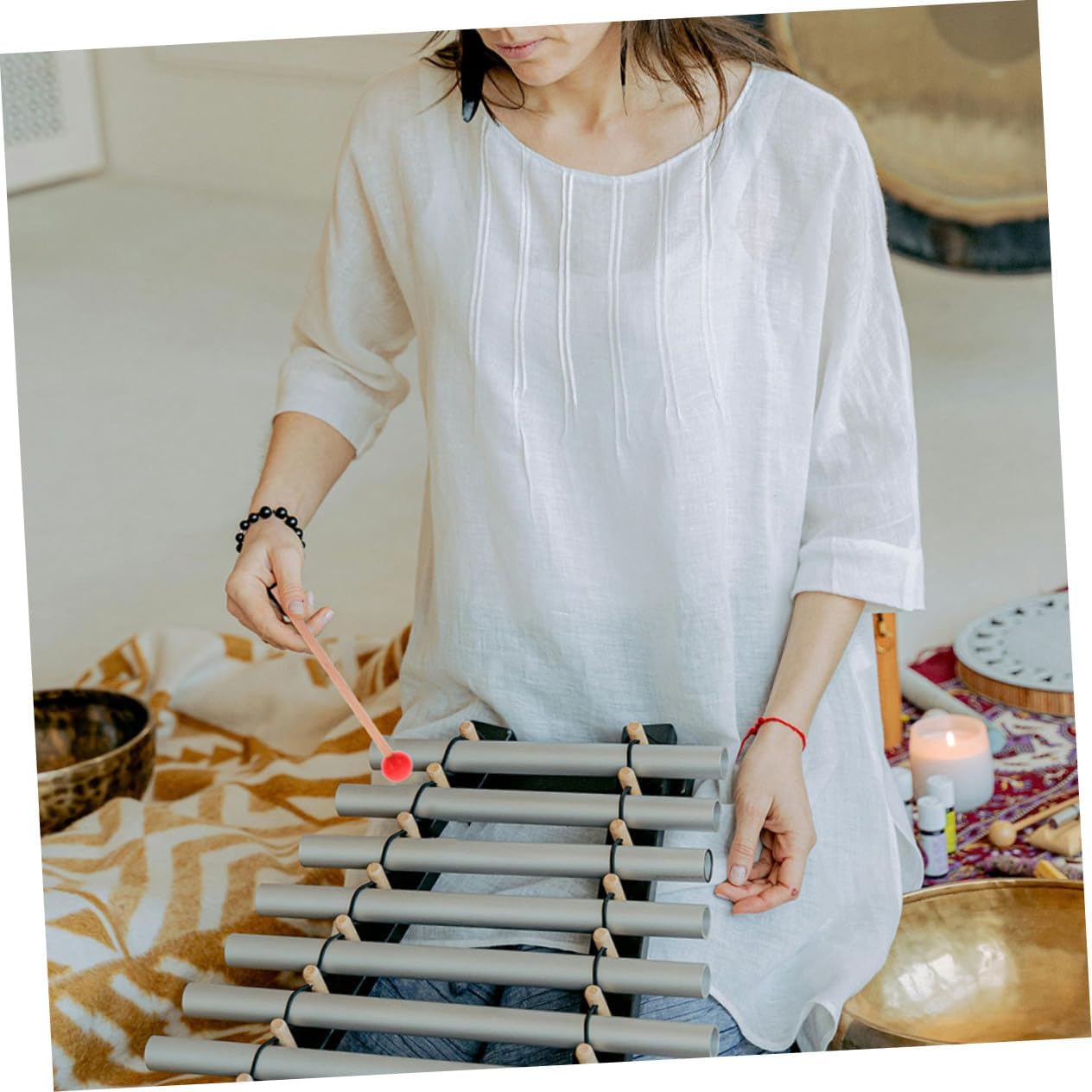 Maniglia comoda: progettata ergonomicamente per una presa sicura e confortevole, consentendo ai musicisti di concentrarsi sulla propria arte senza disagio, accessori per tamburo per marimba, bacchette per lingua Design unico: elementi di design unici rendono queste bacchette una scelta eccezionale per i musicisti che cercano individualità e stile, bacchette per xilofono, bacchette in legno per marimba Facili da usare: queste bacchette sono progettate per essere maneggiate facilmente e sono adatte a principianti, professionisti e amanti della musica di tutte le età. bacchette per percussioni, bacchette per marimba con testa in gomma Artigianato raffinato: la produzione precisa garantisce un'emissione sonora costante e una lunga durata per un uso a lungo termine, bacchette in legno per xilofono, bacchette per tamburo a lingua Design innovativo: presenta un design unico e moderno, migliorando sia gli aspetti estetici che funzionali della performance musicale, bacchette per batteria per xilofono, bacchette per xilofono