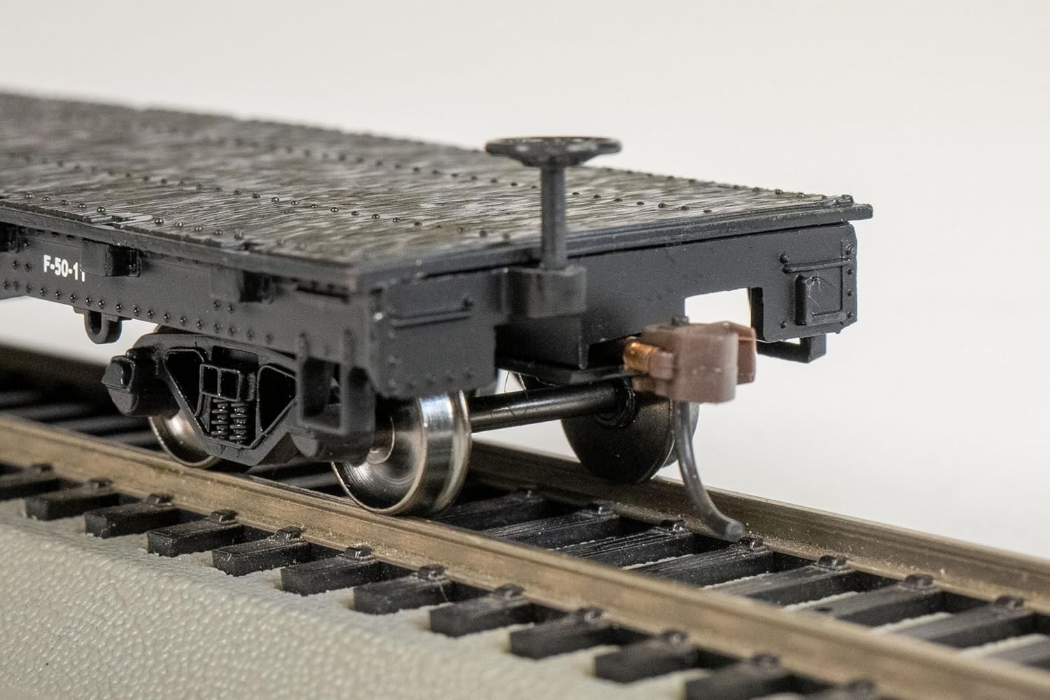 blackened machined-metal wheels with RP25 contorni magneticamente operated, body Mounted E-Z mate couplers Non magnetico, annerito assi in ottone con cuscinetti ad ago celcon Trucks Peso aggiuntivo per monitoraggio ottimale