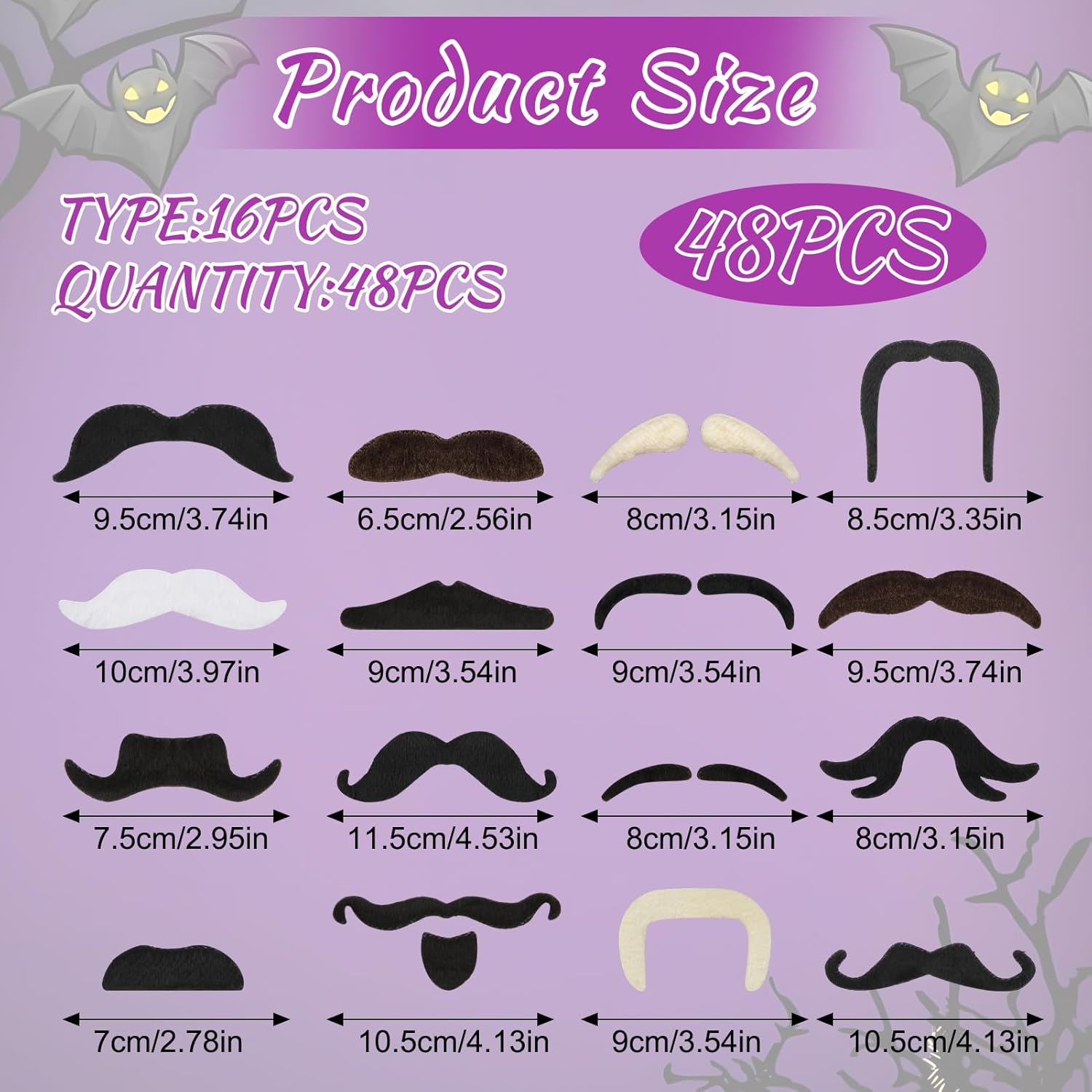 Ampio set: 48 barbe autoadesive in pelliccia sintetica in diversi stili (ad es. come folti, stretti, baffi) e 4 colori (nero, marrone, grigio, bianco) – ideale da abbinare per un look personalizzato. Aspetto realistico e delicato sulla pelle: pelliccia sintetica di alta qualità con texture naturale e posizionamento preciso dei capelli per un aspetto reale. Autoadesivo, delicato sulla pelle e rimovibile senza tracce. Facile da usare: carta di supporto rimovibile per un'applicazione rapida. Opzioni riutilizzabili con un'attenta manipolazione – perfette per trasformazioni veloci. Molteplici possibilità di utilizzo: ideale per feste in costume, Halloween, carnevale, cosplay, teatro o eventi anni '80. Crea accenti divertenti o eleganti a seconda del design. Adatto a tutti: unisex e adatto per adulti/bambini (a partire dai 3 anni). Stili diversi per diverse forme e personalità del viso.