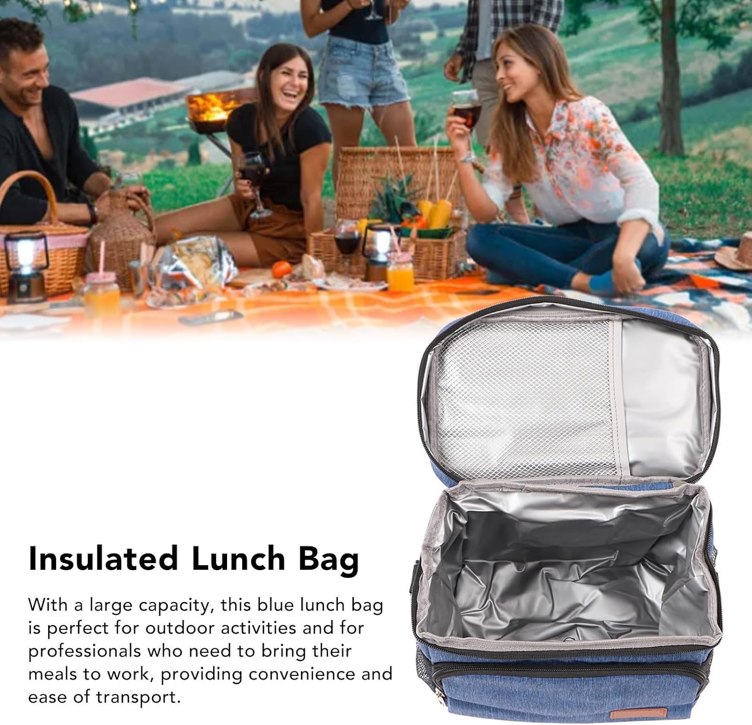 Durevole e elegante: realizzato con tessuto Oxford di alta qualità Questa scatola da pranzo isolata combina la durata con un elegante look moderno. Il materiale robusto resiste all'usura mentre l'elegante colore blu aggiunge un tocco di eleganza. Sia che tu lo stia usando per la consegna di cibo per la spesa o per viaggiare questa borsa è progettata per soddisfare tutte le tue esigenze con talento e funzionalità. Isolamento a triplo strato: blocca la temperatura e inizia la giornata con un pasto caldo grazie all'isolamento a triplo strato che fornisce una ritenzione di calore costante. Questa tecnologia avanzata garantisce che il tuo cibo rimane alla temperatura perfetta per ore, rendendolo ideale per i professionisti impegnati e gli appassionati all'aperto. I materiali premium utilizzati nella costruzione garantiscono prestazioni e durata di lunga durata. Design impermeabile e tenuta: il design completamente impermeabile consente di trasportare piatti di pesce o liquido senza la preoccupazione di perdite o contaminazione. L'interno facile da pulire garantisce una manutenzione senza problemi, mentre la robusta costruzione impedisce sversamenti e casi. Questa funzione lo rende per i viaggi in spiaggia per picnic e i pendolari quotidiani in cui l'affidabilità è fondamentale. Mantieni il cibo caldo o freddo: goditi i pasti caldi e gli spuntini sempre e ovunque, poiché questa borsa da pranzo mantiene il cibo caldo e pronto da mangiare. Il design innovativo funziona anche perfettamente per mantenere le tue bevande e deperibili refrigerati rendendolo versatile per tutte le stagioni. Che tu stia andando al lavoro o in un'avventura del fine settimana, i tuoi pasti rimarranno freschi e deliziosi durante il giorno. Grande capacità e portatile: con un interno spazioso questa borsa da pranzo blu è perfetta per le attività all'aperto e i professionisti che hanno bisogno di portare i loro pasti al lavoro. Il design pieghevole offre una facile conservazione quando non è in uso mentre la build leggera garantisce un comodo trasporto. La sua dimensione generosa ospita snack e bevande a più contenitori senza compromettere la portabilità.