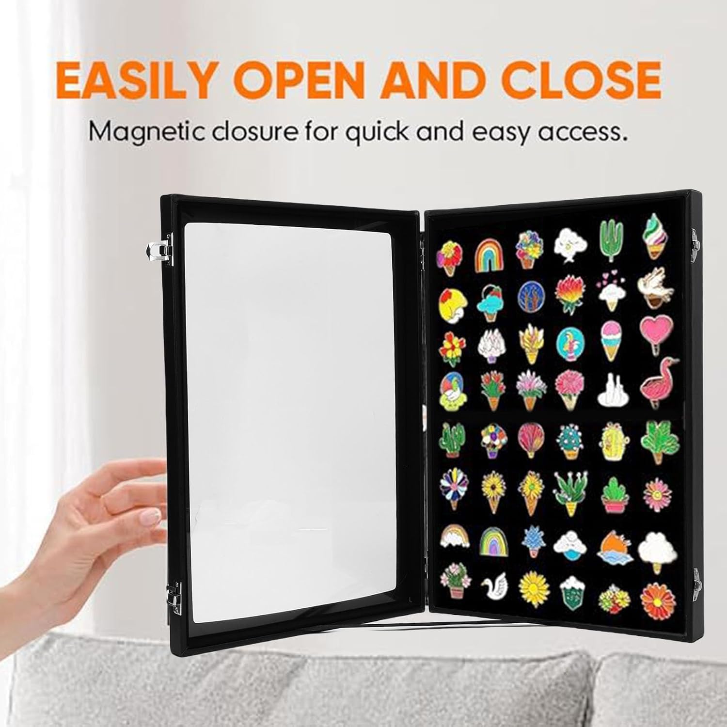 [Funzionalità doppio display] Il design versatile consente di appenderlo alle pareti o posizionarlo su tavoli per mostrare in modo efficace la tua collezione di spille smaltate. [Design con chiusura magnetica] Facile accesso con una mano, consentendo una comoda riorganizzazione dei perni garantendo al tempo stesso una vestibilità per il display. [Visibilità cristallina] La copertura altamente trasparente offre una vista senza ostacoli, migliorando la bellezza e i dettagli di ogni spilla smaltata. [Montaggio sicuro dei perni] Il cuscinetto in schiuma rivestito in feltro mantiene i perni saldamente in posizione, impedendo il movimento e mantenendo un'esposizione organizzata della raccolta. [Ampia capacità di archiviazione] Misura 13,8x9,4 pollici e può contenere circa 45 spille smaltate, ideali per le collezioni attuali e le future espansioni.