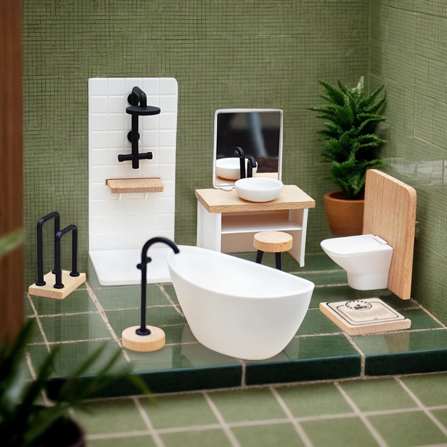 Design Sicuro per Bambini: Struttura in legno e PP con bordi arrotondati, bilancia robustezza e delicatezza sulle mani durante l'interazione ludica prolungata Progetto Compatto: Dimensioni in miniatura per un inserimento immediato nella maggior parte delle case delle bambole. Grazie al design concentrato, è facilmente riponibile e occupa spazio limitato durante la non utilizzo, semplificando la gestione degli spazi. Giochi Combinabili Flessibili: Favorisce l'esplorazione creativa con scenari dinamici per il set bagno casa bambole, offrendo soluzioni di layout personalizzabili attraverso diverse combinazioni utilizzabili autonomamente o integrate Ricostruzione Scenica Dettagliata: Progettato per far immergere i bambini nel gioco di ruolo, ambientazioni bagno realistiche con fini dettagli e artigianato preciso in miniatura 1:12 Regalo Ideale: Set Bagno per Casa delle Bambole aggiunge allegria a qualsiasi stanza dei giochi. Ottimo regalo per la Festa dei Bambini, Natale o compleanni. Adatto a tutti i bambini, stimola il gioco immaginativo e la creatività con dettagli realistici.