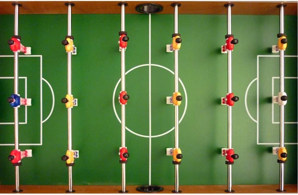 DIVERTIMENTO ASSICURATO: un calcio balilla compatto ma stabile, ideale per sfide appassionanti tra amici e familiari. Perfetto per trascorrere momenti di gioco in casa, in taverna o in sala giochi senza occupare troppo spazio. STRUTTURA ROBUSTA E DESIGN CLASSICO: realizzato in legno MDF con gambe rinforzate, offre stabilità durante le partite. Il campo da gioco verde e i giocatori colorati richiamano il fascino del calcetto tradizionale. FACILE DA USARE E MONTARE: dotato di aste in metallo con manopole antiscivolo per un controllo preciso e scorrevole. Si monta rapidamente ed è pronto per regalare ore di divertimento a grandi e piccoli. COMPATTO E VERSATILE: le dimensioni contenute lo rendono adatto anche per spazi ridotti. Un gioco che unisce semplicità e divertimento, perfetto come idea regalo per bambini e appassionati di calcetto.