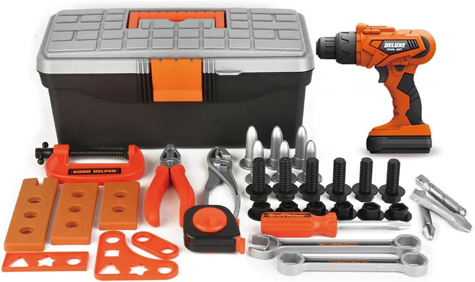 Set completo di 36 pezzi – Questa cassetta degli attrezzi per bambini contiene tutto il necessario per un gioco realistico: trapano elettrico, martello, cacciaviti, chiavi inglesi, pinze, oltre a chiodi, dadi, viti e trucioli di legno per costruzioni creative. Trapano elettrico realistico incluso – Il trapano giocattolo aggiunge realismo e stimola la coordinazione mano-occhio. Sicuro e divertente, permette ai bambini di imitare i grandi mentre giocano, rafforzando le capacità motorie e la manualità. Gioco educativo e creativo – Questo set stimola logica, problem solving e immaginazione. Perfetto per sviluppare abilità STEM nei più piccoli, incoraggia il gioco di ruolo e la curiosità per le attività pratiche, avvicinando i bambini al mondo del fai-da-te. Valigetta porta attrezzi resistente e portatile – Tutti gli strumenti si ripongono facilmente nella cassetta, rendendo il gioco ordinato e pratico. Il design compatto e leggero la rende ideale da portare ovunque: a casa, in garage o durante le gite. Regalo ideale per bambini curiosi – Perfetta come regalo per compleanni, Natale e occasioni speciali. Adatta a bambini e bambine che amano imitare mamma e papà, è un gioco che unisce divertimento e apprendimento in totale sicurezza.