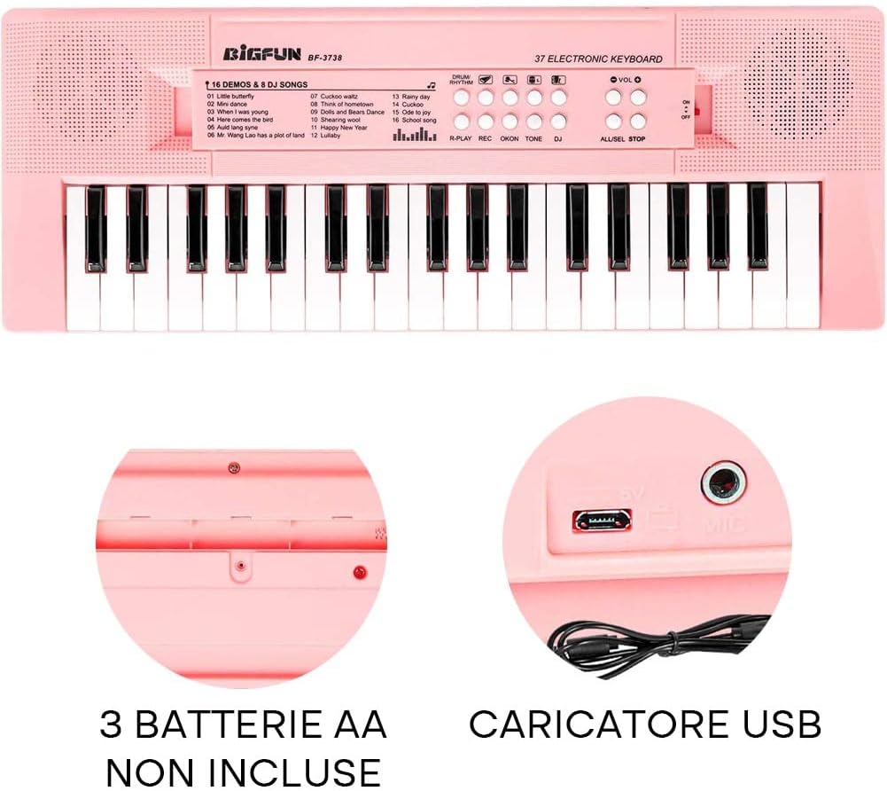 Vuoi sviluppare il piccolo artista che è in te ed imparare a suonare uno strumento musicale per lasciare libero spazio alla tua arte? Ottimo, Bakaji ha quello che fa per te! Tastiera per bambini a 37 tasti, elettronica e con tante funzioni di registrazione e riproduzione. Esercitati con il piano e riscalda la voce, poichè insieme alla tastiera avrai anche un microfono con cui migliorare le abilità canore! La tastiera è un gioco educativo che può aumentare concentrazione, interesse ed abilità! I tuoi piccoli musicisti saranno felici di poter sviluppare la loro piccola grande passione.