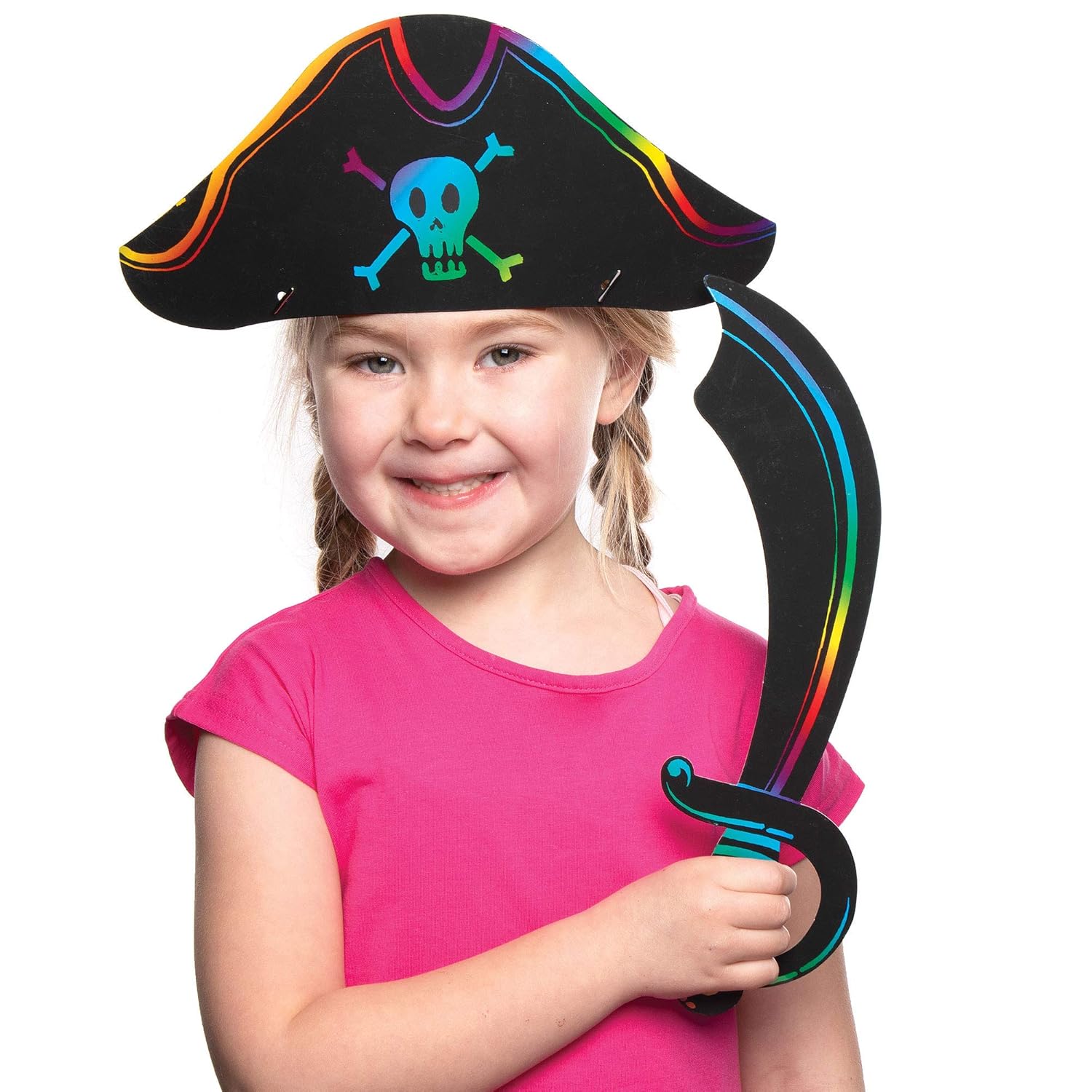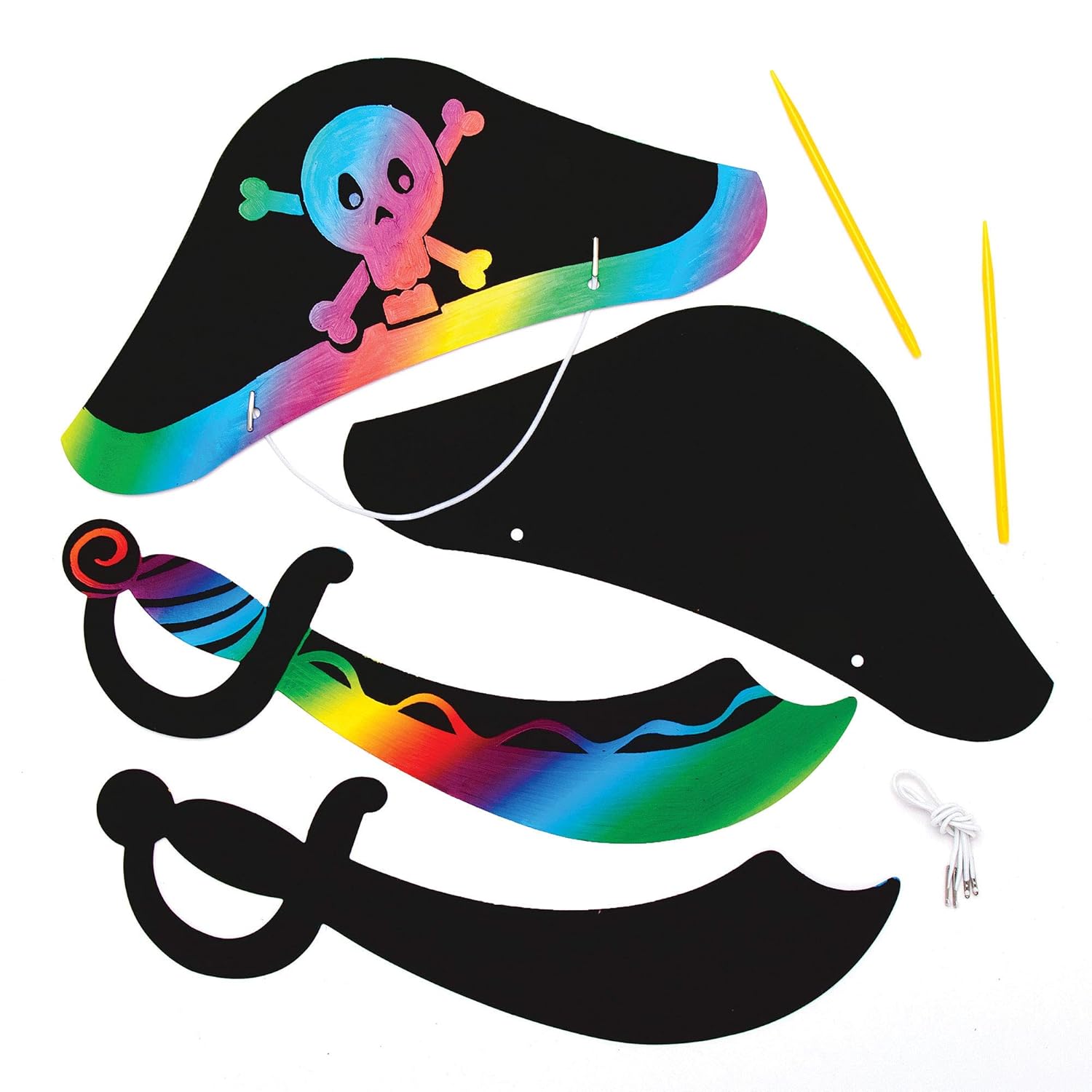 Artigianato per bambini: Questi cappelli da pirata e spade artistiche creano due divertimenti in uno! Non solo puoi decorare il tuo, ma una volta completato, puoi anche indossare tutto! Confezione Divertente: Basta graffiare il rivestimento nero con lo strumento per graffiare le bacchette magiche incluso, creare motivi, strisce, pois, iniziali o persino una bella immagine, poi iniziare una lotta con la spada, una caccia al tesoro o navigare verso la tua prossima avventura! Kit d'arte per bambini: Se stai cercando un progetto artigianale per tutte le età e abilità, l'hai trovato. Questi kit sono così semplici da realizzare e tuttavia i risultati sono sorprendenti Incluso nella confezione: Il nostro pacchetto per bambini è fornito in quantità sufficiente per creare 4 cappelli e 4 spade. Ciascuno misura 29 - 31 cm Realizzato da esperti: Baker Ross progetta e fornisce le migliori forniture artistiche e artigianali e giocattoli a scuole, gruppi e genitori da oltre 40 anni. Tutti i prodotti sono conformi alle norme generali sulla sicurezza dei prodotti e alle raccomandazioni sull'età, dove applicabili.