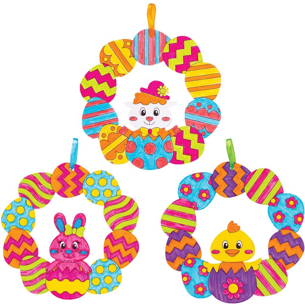 Decorazioni Pasquali: fate le vostre corone di Pasqua - i piccoli saranno entusiasti di aver potuto creare delle decorazioni così belle! Ghirlanda di Pasqua: scegli i colori più brillanti della primavera e decora queste ghirlande pasquali splendidamente illustrate, usando matite, colori, penne o anche pastelli (non inclusi). Dai vita a queste uova e ai simpatici personaggi con le tinte dell'arcobaleno, poi aggiungi il nastro appeso ed esponili per tutti! Decorazioni di Ghirlande: Colorare, creare, esporre e fare! Colora con le nostre penne a punta fine in fibra (non incluse). Incluso nella Confezione: Ogni Confezione include 4 colori assortiti di nastro: rosa, blu, arancione e verde. Confezione da 8. 4 disegni pasquali assortiti. Dimensioni: 18 cm di diametro (7 pollici). Ogni decorazione viene fornita con un nastro di 30 cm (11,8 pollici). Il design è stampato su un lato. Realizzato da esperti: Baker Ross progetta e fornisce forniture artistiche e Artigianali e giocattoli a scuole, gruppi e genitori da oltre 40 anni. Tutti i prodotti sono conformi alle normative generali sulla sicurezza dei prodotti e, ove applicabile, indicano l'età consigliata.