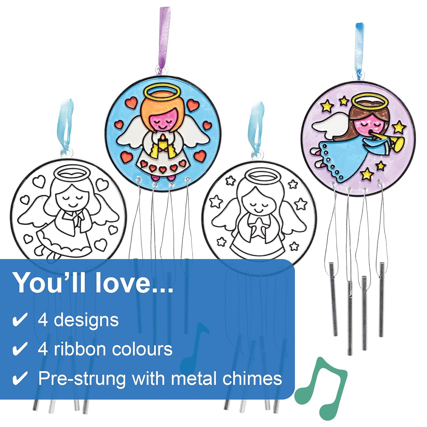 Acchiappasole per bambini: i bambini possono divertirsi con questo kit fai-da-te decorandoli con le nostre penne per vetro o vernici (vendute separatamente). Una volta finito, potrai appenderlo come decorazione in giardino o fuori dalla porta di casa e ascoltare il tintinnio degli angeli. Decorazione per bambini: le linee predefinite consentono ai bambini di colorare facilmente qualsiasi disegno desiderino con tutti i colori dell'arcobaleno, quindi osserva la magia svolgersi quando appendi i campanelli alla finestra. Attività artigianali per bambini: questo kit fai da te è perfetto per i giovani che vogliono creare e personalizzare un progetto. Ideale per lavori scolastici, attività di gruppo, vacanze, progetti domestici e molto altro. Incluso in questa confezione: 4 campanelli angelici. Ogni campanello a vento in acrilico è preimpostato con campanelli in metallo e nastro per appenderlo. 4 modelli assortiti. Diametro 12,5 cm (4,9 pollici). REALIZZATO DA ESPERTI: Baker Ross progetta e fornisce i migliori oggetti di artigianato e giocattoli per scuole, gruppi e genitori da oltre 40 anni. Tutti i giocattoli e i prodotti Baker Ross sono conformi agli standard generali di sicurezza e, ove applicabile, è indicata l'età minima.