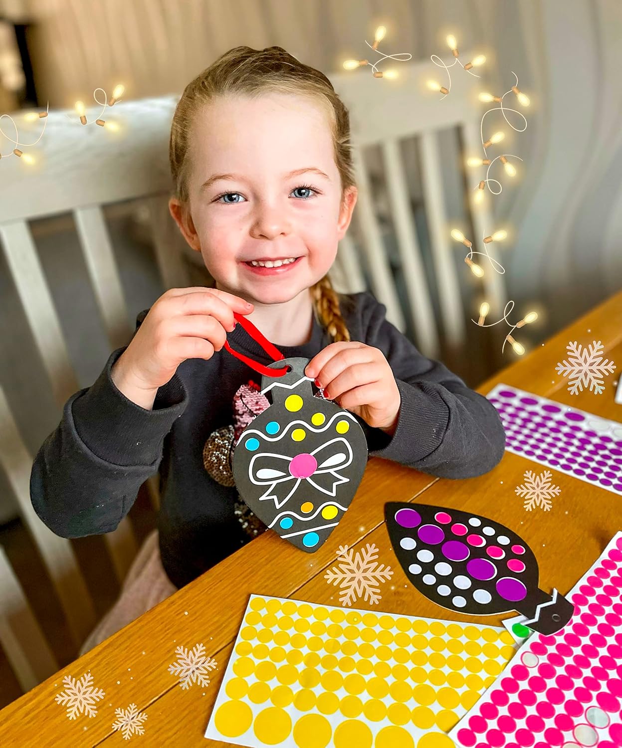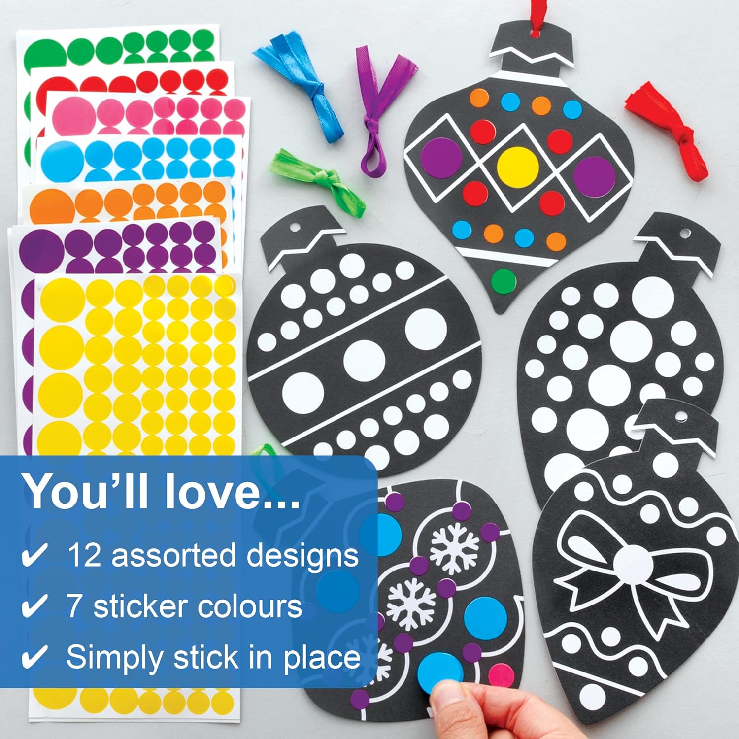 Artigianato Natalizio per Bambini: Questi fantastici kit di adesivi artistici a forma di pallina terranno occupati i bambini. Adoreranno attaccare con cura i punti autoadesivi alle palline, attaccare il nastro colorato e avrai creato le tue magiche decorazioni per l'albero di Natale da regalare alla famiglia. Adesivi per Bambini: Gli adesivi a punti colorati sullo sfondo nero forniscono un effetto artistico davvero impressionante e la semplice tecnica artigianale sarà quella che i bambini di tutte le età potranno svolgere in modo indipendente. Ottimo per Bambini: introdurre i bambini a concentrarsi sulla coordinazione occhio-mano e sulla destrezza in una quieta attività artistica. Ottimo se sei in vacanza, a scuola, in viaggio, ecc. Incluso nella confezione: Ogni confezione di adesivi a puntini include 12 cartoncini assortiti a forma di pallina (350 g/m²), 16 fogli di adesivi di dimensioni e colori assortiti (giallo, viola, arancione, blu, rosa, rosso e verde) e nastro in 4 colori assortiti (viola, rosso, blu e verde). Realizzato da esperti: Baker Ross progetta e fornisce forniture artistiche e artigianali e giocattoli a scuole, gruppi e genitori da oltre 40 anni. Tutti i prodotti sono conformi alle normative generali sulla sicurezza dei prodotti e, ove applicabile, indicano l'età consigliata.