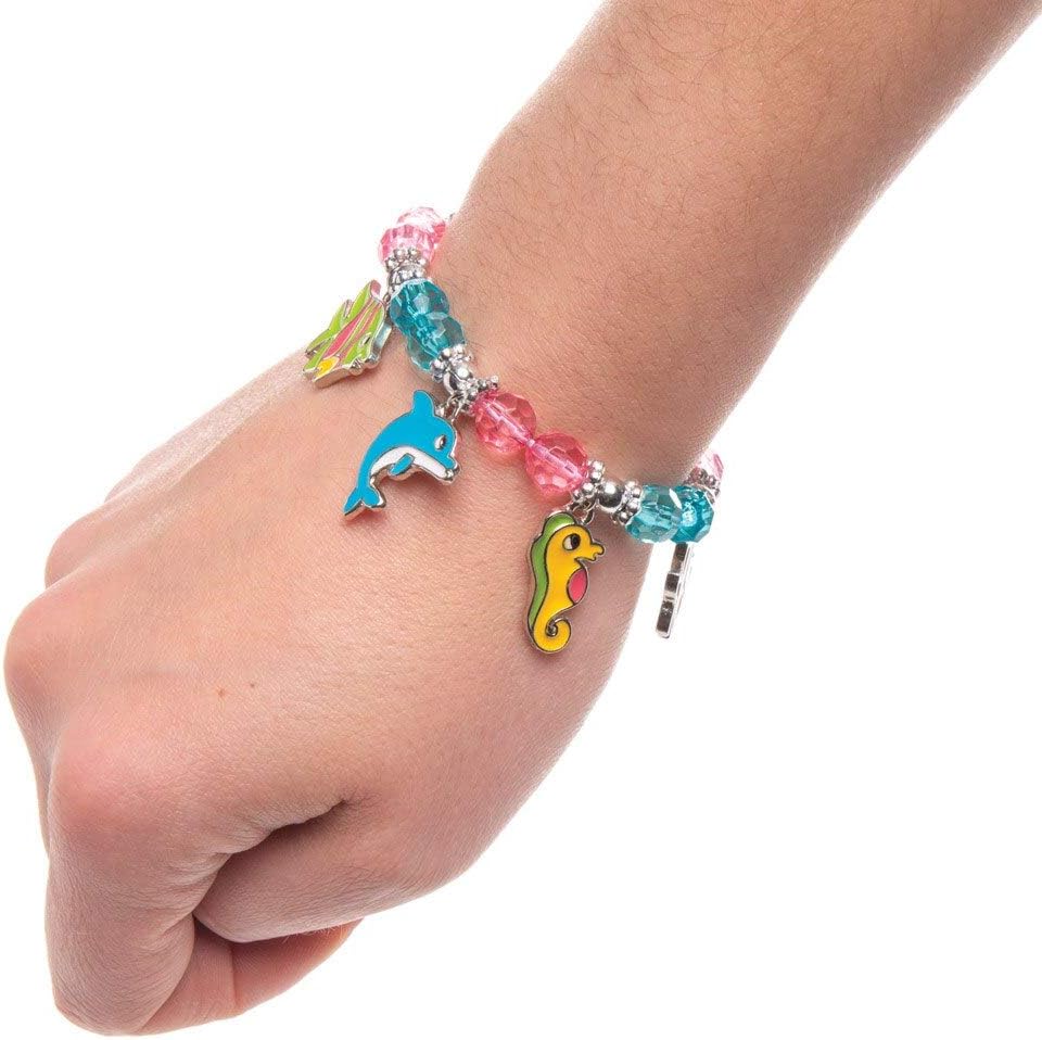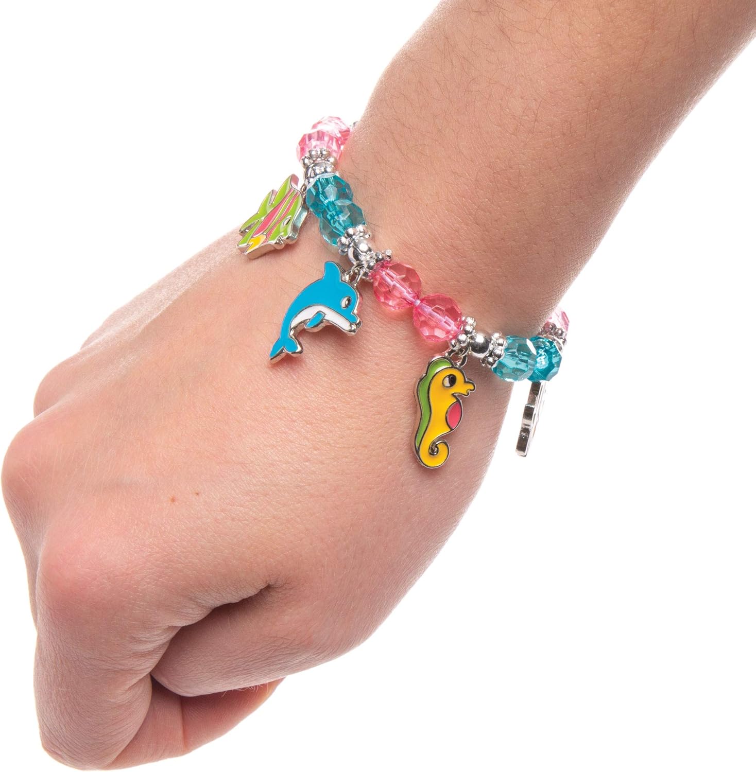 Set artigianale per ragazze: un fantastico regalo per ragazze alla moda per fare lavoretti da sole o con gli amici per il compleanno di un bambino. Artigianato creativo: gli appassionati di perline vorranno iniziare subito e infilare i cristalli scintillanti e i distanziatori in argento con i ciondoli delfino, cavalluccio marino e pesce. Set artigianale semplice per tutti i braccialetti: con questo semplice set artigianale, i bambini possono realizzare bellissimi braccialetti con ciondoli. Ottimo come regalo artigianale per ragazze creative. Incluso nella confezione: 3 kit artigianali con braccialetti con ciondoli per creature marine. Ogni set contiene ciondoli in metallo, perline di cristallo di plastica, perline d'argento e elastico. In 3 diversi design. Dimensioni del ciondolo: 10 mm - 15 mm Realizzato da esperti: Baker Ross fornisce a scuole, gruppi di giovani e genitori i migliori materiali e giocattoli per arti e mestieri da 40 anni. Tutti i nostri prodotti sono soggetti alle normative CE e alle normative generali sulla sicurezza dei prodotti e sull'artigianato creativo: i bambini adoreranno creare e indossare il proprio braccialetto personalizzato con creature marine. Con le scintillanti perline del braccialetto e i graziosi ciondoli delle creature marine, questo set è ideale per i principianti. Set di braccialetti: questi bellissimi braccialetti con vita marina sono perfetti come braccialetti dell'amicizia personalizzati. I bambini possono semplicemente infilare le perline e i ciondoli sull'elastico per creare i propri disegni e modelli.