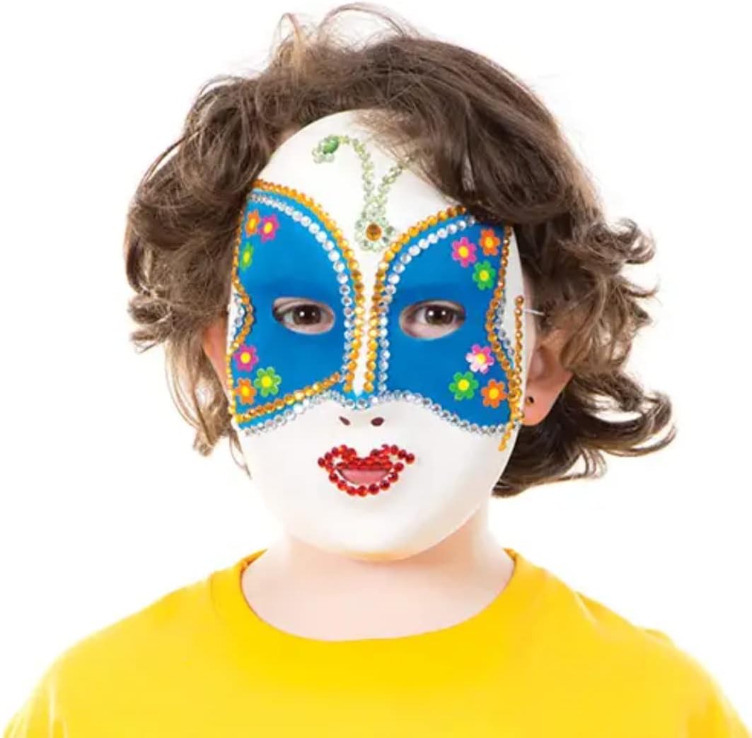 Maschere decorabili: Queste maschere bianche sono perfette per entrare nel personaggio. Facili da dipingere e personalizzare, i bambini adoreranno l'opportunità di essere creativi. Durevoli: Realizzate con una speciale superficie per una facile decorazione. Viene fornito di elastico per una perfetta vestibilità per i bambini; misura circa 18cm x 16cm. Personalizza e decora: Usa prodotti artigianali, come colori acrilici, adesivi, vernice, glitter, piume, pennarelli e altro ancora per creare il tuo look. Accessorio costume: Travestiti, gioca o accessoriati con queste uniche maschere. Ideale per feste, balli in maschera, raduni, dolcetto o scherzetto, aule, costumi unisex per ragazzi e ragazze e altro ancora. La sicurezza prima cosa: Tutti i giocattoli e i lavoretti Baker Ross sono coperti dalle normative CE e sulla sicurezza generale dei prodotti. Baker Ross si rivolge a tutte le età e lascia ai clienti la valutazione dell’età appropriata per ogni particolare oggetto.
