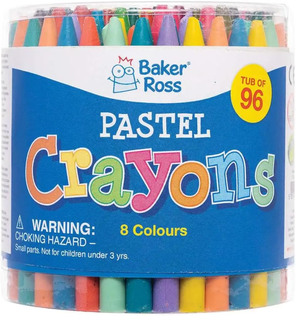 96 pastelli a cera in 8 colori pastello assortiti. Ideale per tutte le attività di colorazione: i colori sono facili da sfumare insieme e ogni pastello è avvolto in carta per mantenere le mani pulite. Ogni confezione contiene 96 pastelli in 8 colori pastello assortiti – rosso, arancione, giallo, verde, menta piperita, blu, verde acqua chiaro e viola e sono disponibili in una vasca per una facile conservazione Il gran numero di pastelli inclusi in questa confezione rende questi pastelli ideali per attività artigianali in famiglia o aule scolastiche