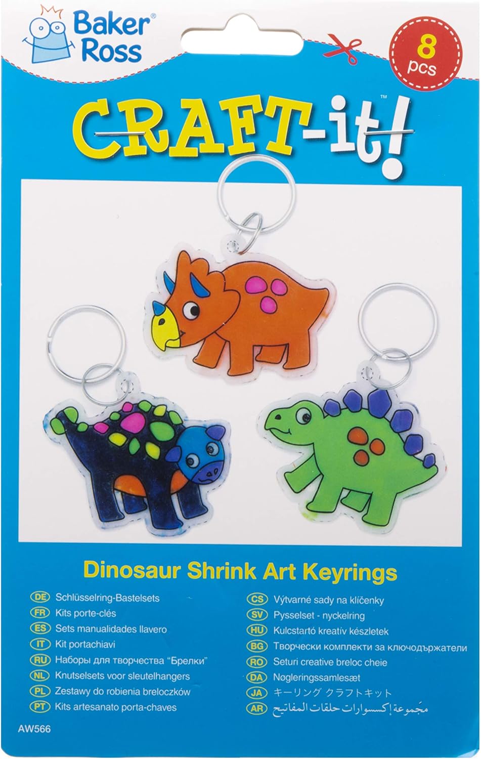 Da decorare con le nostre matite colorate o pennarelli Deco Pen (non inclusi) 8 soggetti assortiti. i disegni possono essere ridotti in un forno elettrico Materiale speciale che si restringe fino a 7 volte Ogni confezione include 8 fogli in plastica termoretraibile prestampati e 8 anelli a spirale Realizzato da esperti: Baker Ross progetta e fornisce le migliori forniture artistiche e artigianali e giocattoli a scuole, gruppi e genitori da oltre 40 anni. Tutti i prodotti sono conformi alle norme generali sulla sicurezza dei prodotti e alle raccomandazioni sull'età, dove applicabili.