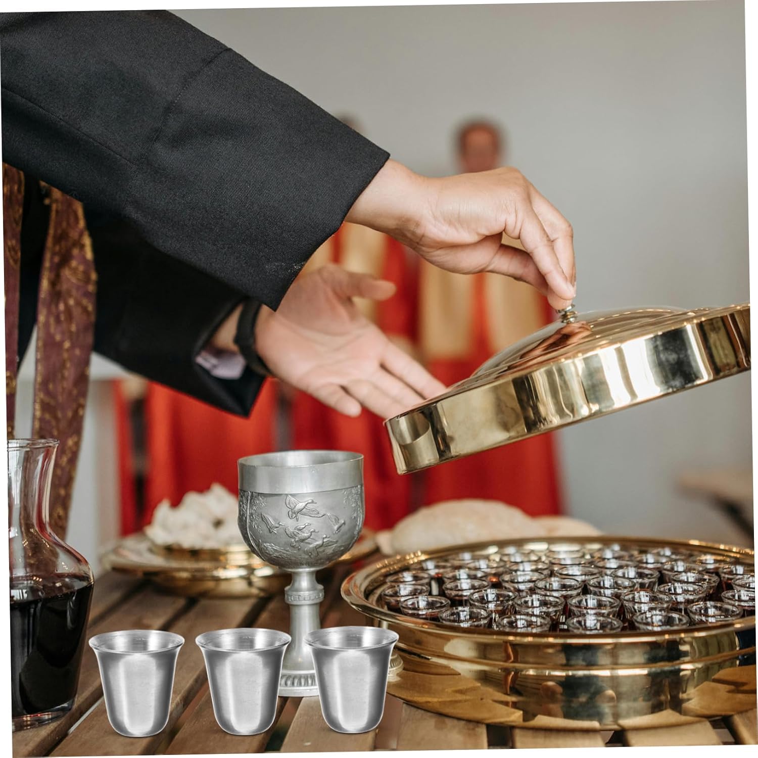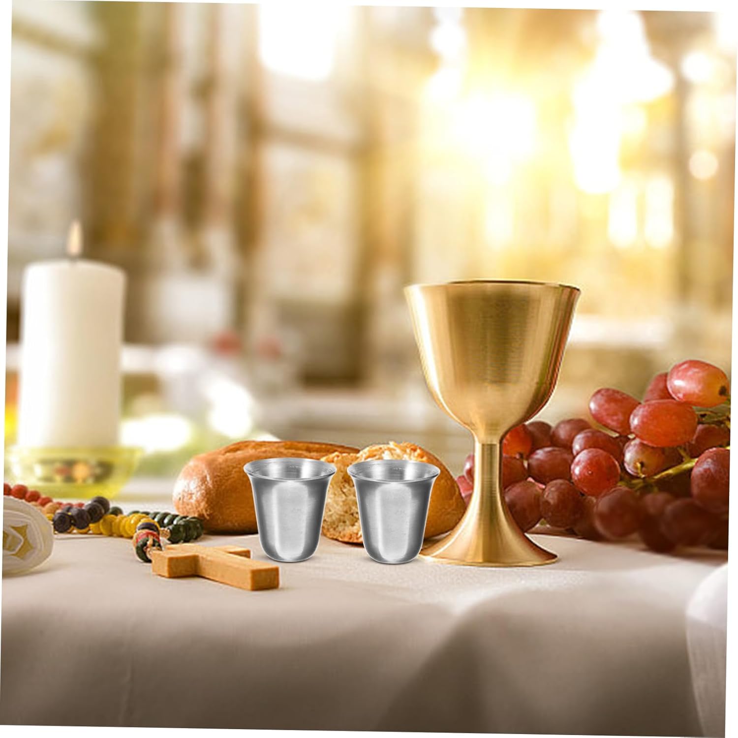 Bicchiere in metallo per bere - L'esterno di questo set lo rende adatto per l'uso in chiese e altre istituzioni religiose, Bicchieri in acciaio inossidabile impilabili Bicchiere piccolo in acciaio inossidabile - La tazza per comunione è impilabile, consente un uso efficiente dello spazio e fornisce una tazza per comunione pratica e pratica Bicchiere per comunione in metallo - La tazza piccola è leggera e piccola, facile da trasportare nello zaino per le occasioni religiose e facile da riporre, Bicchieri in acciaio - Questa tazza per comunione è sicura, sana, robusta, riutilizzabile e ha una dimensione compatta per riunioni religiose, tazze per feste - Aspetto ma design creativo per una coppa da comunione, utilizzata da tempo nella coppa da comunione quotidiana e da festa in acciaio