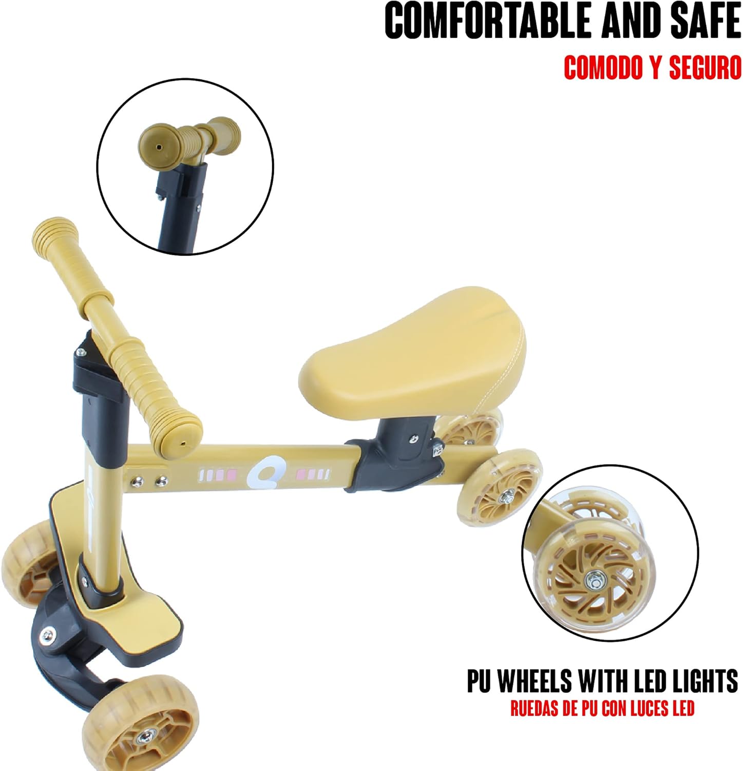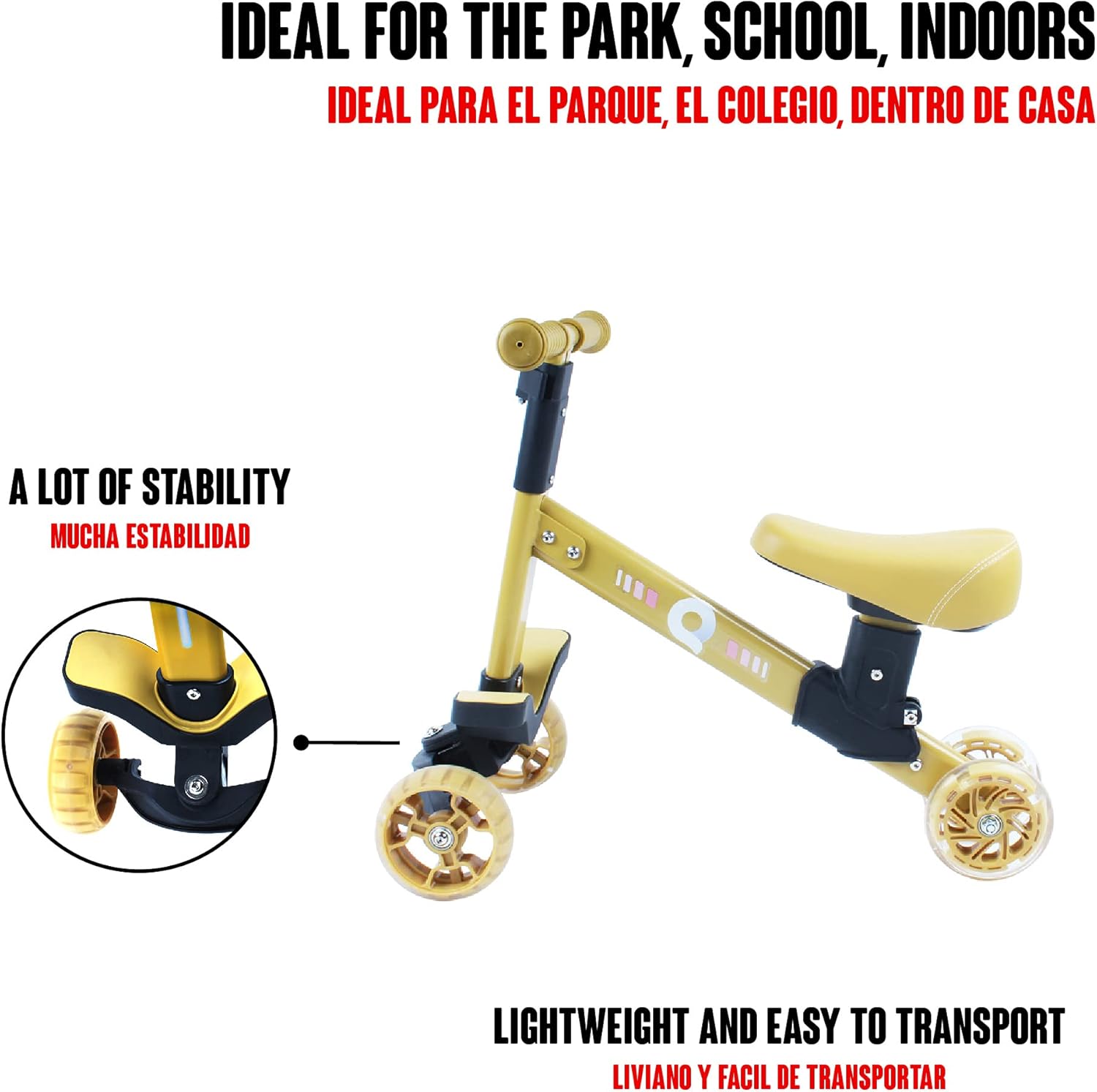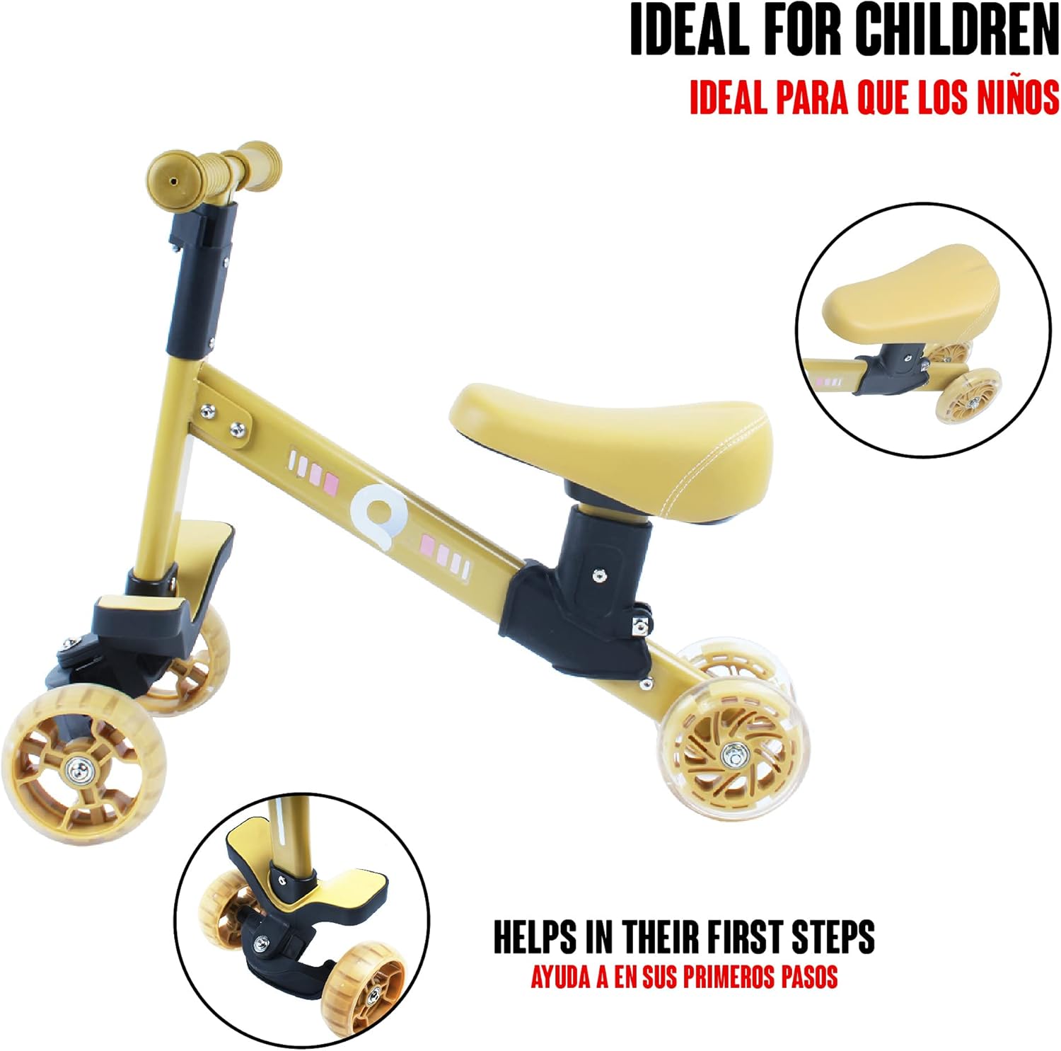 DESIGN STABILE: il design a 4 ruote rende la bici da equilibrio più stabile. Aiuta i bambini a sviluppare la coordinazione garantendo la loro sicurezza quando imparano a camminare. I cuscinetti svasati facilitano il controllo dell'equilibrio. È dotato di sterzo limitato a 135° per evitare qualsiasi rischio di ribaltamento, il che lo rende più sicuro per i tuoi bambini! CONFORTEVOLE E SICURA: La baby Balance Bike è dotata di un telaio in alluminio, una maniglia morbida e antiscivolo che permette ai bambini di pedalare comodamente, un sedile comodo e ruote in PU silenziose e resistenti: non dovrai preoccuparti di forature o manutenzione delle ruote! Inoltre, possono essere utilizzati sia all'interno che all'esterno. REGALO IDEALE PER I BAMBINI: La bici senza pedali Calma Dragon contribuisce allo sviluppo dell'equilibrio, della coordinazione e della direzione dei bambini e li aiuta ad acquisire sicurezza per imparare a camminare fin dalla tenera età. Le ruote anteriori della bici senza pedali per bambini in PU contengono luci a LED, queste luci si accendono quando le ruote iniziano a girare, aumentando il divertimento del bambino. FACILE DA ASSEMBLARE E TRASPORTARE: I genitori impiegheranno solo pochi minuti per montare la bicicletta senza pedali per ragazze Calma Dragon. Può essere posizionato nel bagagliaio dell'auto poiché è leggero e portatile, facilitando il sollevamento dei bambini