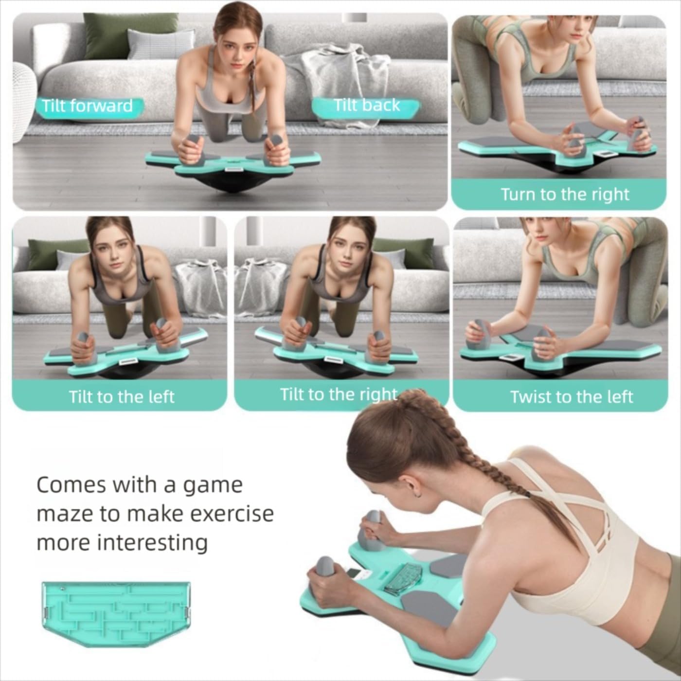 Design versatile: balance board multifunzionale con movimenti di inclinazione e rotazione, con manici staccabili e labirinto di gioco integrato per allenamenti coinvolgenti Modalità di allenamento: sei diverse posizioni di esercizio tra cui inclinazione in avanti, inclinazione indietro, inclinazione a sinistra, inclinazione a destra, girare a destra e girare a sinistra per un allenamento completo del core Funzione interattiva: il gioco integrato del labirinto aggiunge valore di intrattenimento alla tua routine di allenamento, rendendo l'esercizio più coinvolgente e motivante Facile da riporre: il design compatto con ingombro ridotto lo rende facile da riporre, disponibile in diverse opzioni di colore tra cui verde menta, rosa e grigio Recupero post-allenamento: le palline massaggianti rimovibili possono essere utilizzate per rilassare schiena e gambe dopo le sessioni di allenamento