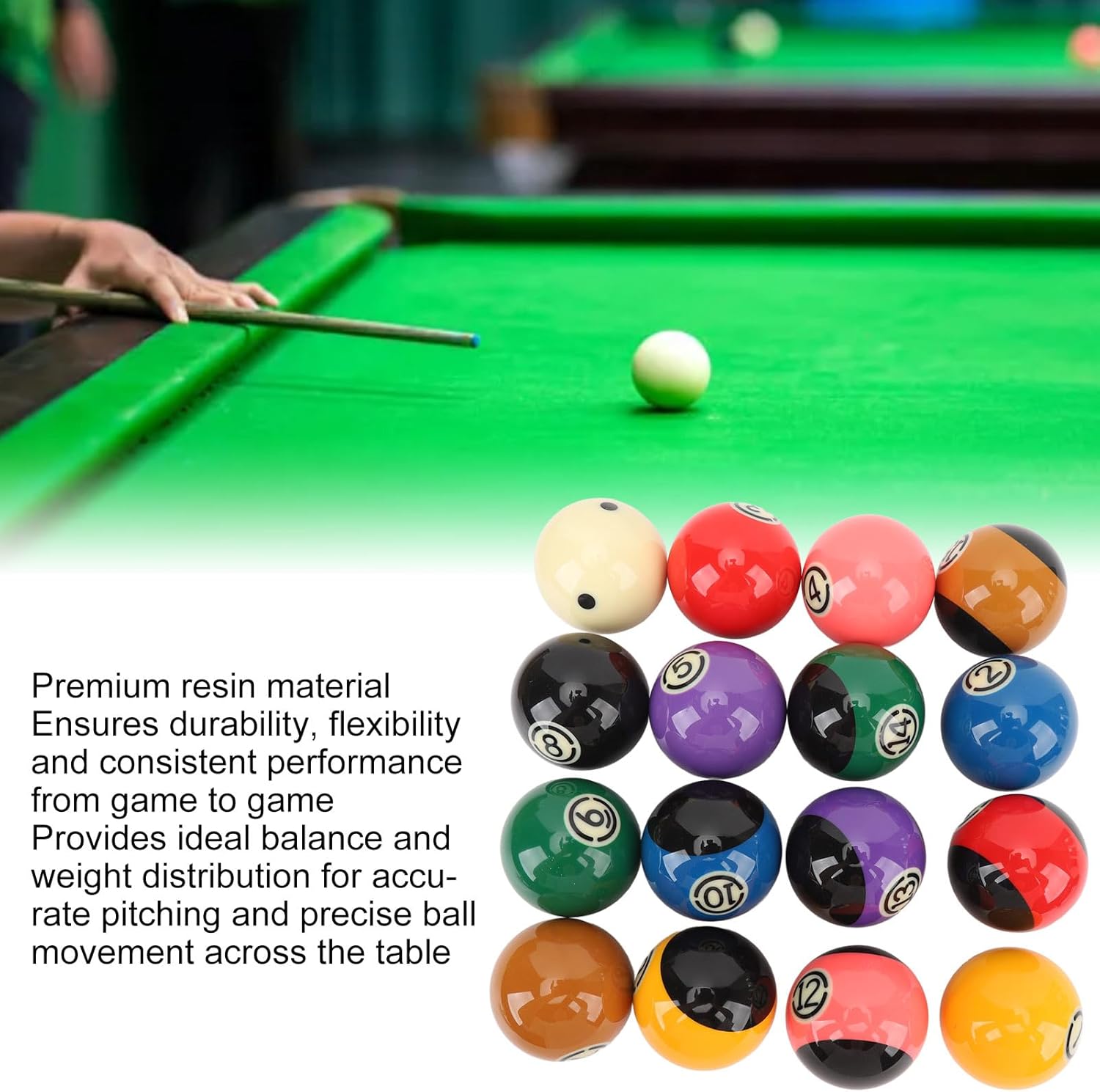 [Materiale in resina] Garantisce flessibilità e durata per prestazioni durature [Grado professionale] Adatto per uso professionale e ricreativo [Set all-inclusive] include tutte le palle necessarie per il gioco standard [Rotazione ottimizzata] sfera appositamente trattata per un miglioramento del controllo [Movimento preciso della sfera] fornisce equilibrio ideale e distribuzione del peso