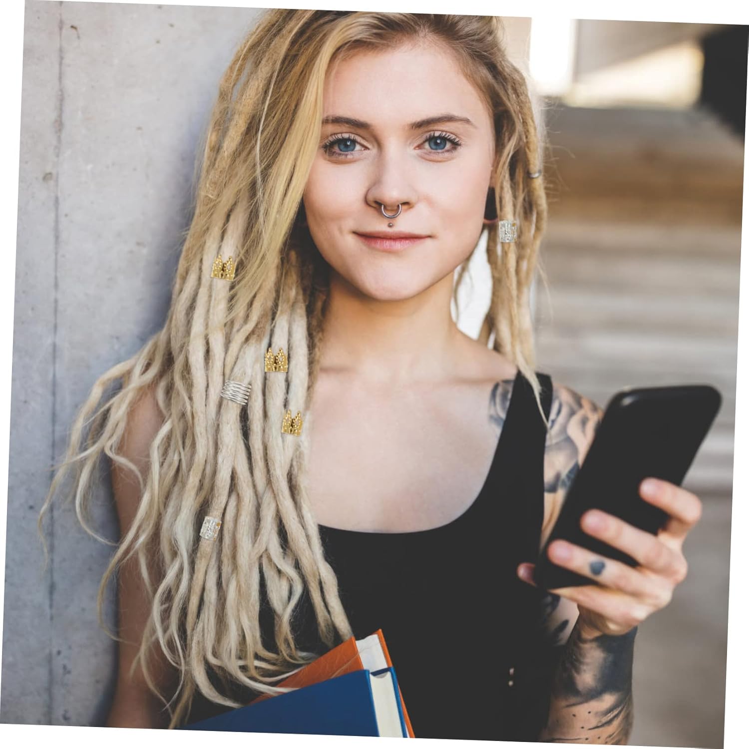 Perline per gioielli: realizzate in materiale in lega, che può essere applicato in sicurezza sui tuoi capelli e non danneggerà i tuoi capelli, anelli per gioielli, perline per trecce: con questi capelli puoi decorare i tuoi capelli per renderli belli e attraenti, set di gioielli per capelli: intreccia o dividi i tuoi capelli nello stile che desideri e decora i tuoi capelli con questi gioielli per capelli. Sarai il più alla moda tra gli speciali anelli per dreadlocks Fibbia a treccia per dreadlocks: adatta per intrecciare i dreadlocks o realizzare acconciature, adatta per feste e balli nuziali ecc., fibbie per capelli con tubo per capelli dreadlock: diversi stili possono soddisfare le tue esigenze, quindi puoi scegliere lo stile adatto alla tua acconciatura e ai gioielli per intrecciare i capelli