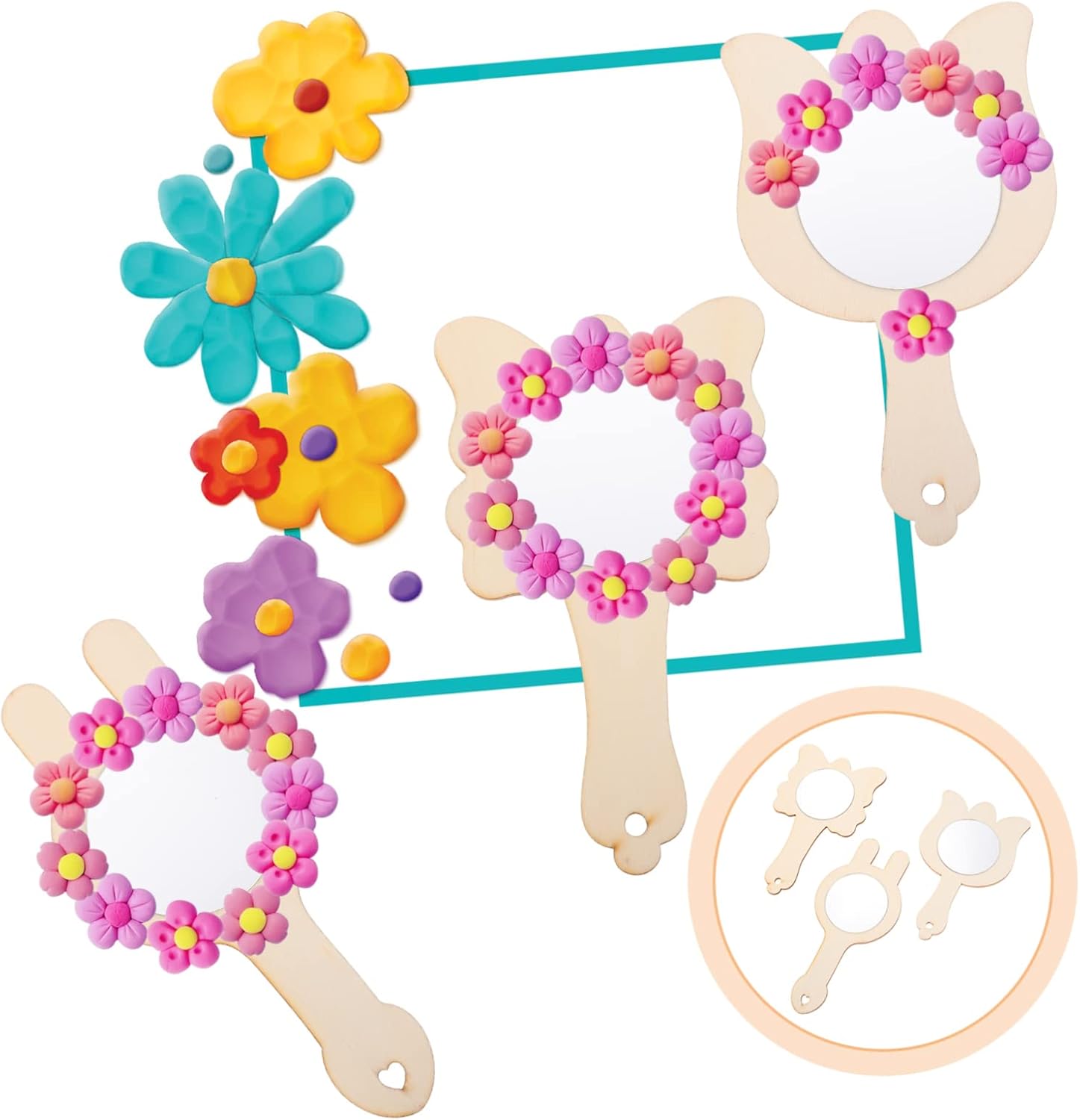 Specchio non finito: puoi attaccare o aggiungere perline, argilla colorata, mastice in schiuma o materiali decorativi per rendere il tuo piccolo specchio più attraente e unico, specchio multiuso Giocattolo a specchio incompiuto: è realizzato meticolosamente e il non è facile da sbiadire dopo un uso prolungato, adorabile giocattolo a specchio Specchio in legno fai da te: guida le associazioni dei bambini a modellare le cose, stimola l'abilità pratica dei bambini ed esercita l'abilità creativa e logica dei bambini, specchi fai da te Lavoretti per bambini dai 4 agli 8 anni: possono realizzare il loro specchio portatile preferito, esercitare abilità pratiche, lavoretti Specchio da viaggio: ampio utilizzo: buoni articoli fai-da-te per la tua abilità pratica e creatività, specchi con maniglia non finita
