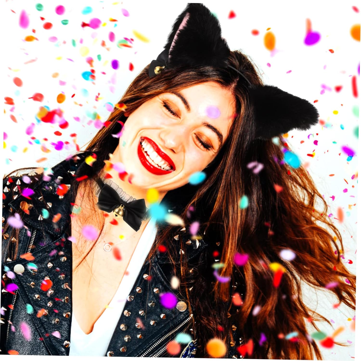 Copricapo da festa: questa fascia è un classico design a forma di orecchie di gatto e può essere utilizzata come oggetto decorativo molto divertente per creare un'atmosfera divertente e divertente per una festa, fascia per ragazze Collana girocollo gotica: una fascia per cosplay, scattare foto, feste di compleanno, spettacoli teatrali, natale, ecc., accessorio per copricapo con orecchie di gatto Fascia per orecchie di animale: ha la forma di orecchie di gatto, adorabile e carina, ma allo stesso tempo innocente, comoda da indossare e toccare, adorabile fascia per con orecchie di gatto Copricapo: la collana è realizzata in buon materiale di pizzo ed è liscia e confortevole, le campanelle dorate la adornano e brillano, morbido cerchietto per con orecchie di gatto Decorazioni per cosplay: la fascia per orecchie di gatto è realizzata con buoni materiali delicati sulla pelle, due orecchie vivaci e carine come orecchie di gatto, accessori cosplay di animali