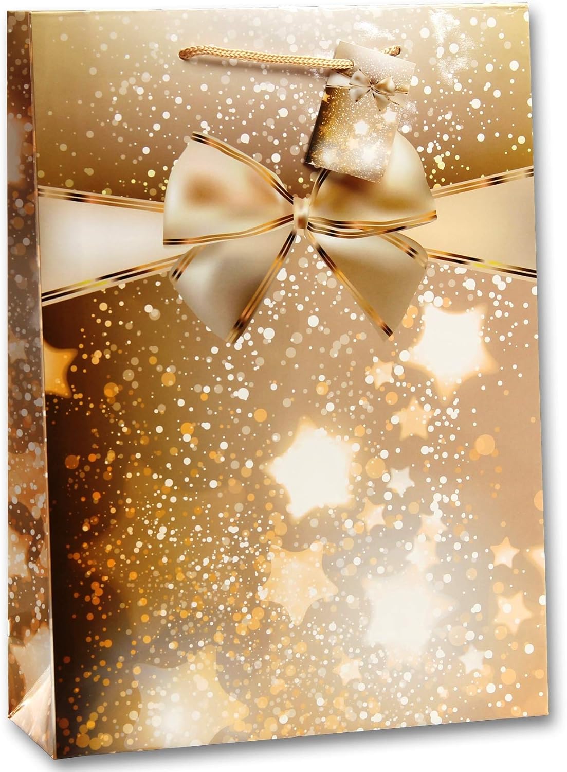DESIGN: Sacchetto regalo con maggiociondolo, stelle, fiocco e riflessi dorati SPESSORE DELLA CARTA: La carta utilizzata è spessa 157 g, quindi molto stabile e ha una superficie lucida PARTICOLARITÀ: Il sacchetto regalo o sacchetto natalizio è dotato di due cordoncini per il trasporto e ha un piccolo biglietto per un nome o un augurio di Natale DIMENSIONI: Il sacchetto regalo o sacchetto natalizio misura ca. 34,5 cm di altezza, ha una lunghezza di ca. 25 cm e una larghezza di ca. 8,5 cm AMBITO DI CONSEGNA: 1 x Bambelaa! Confezione da 12 sacchetti di carta di alta qualità con motivo natalizio con fiocchi e stelle, sacchetti regalo, sacchetti regalo, sacchetti di carta, sacchetti natalizi, carta lucida di Natale, 157 g (circa 25 x 8,5 x 34,5 cm)