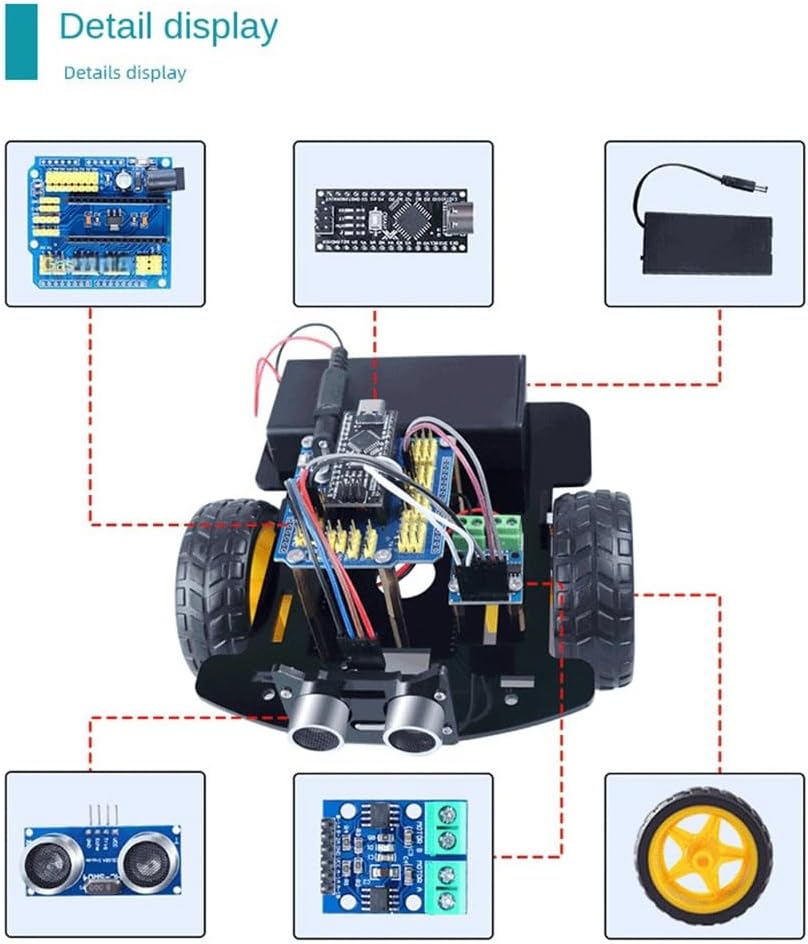 2. per il potente L'auto intelligente del potente adotta un design di installazione saldatura. Utilizzare e in rame per fissare la tra le parti. Il collegamento del circuito tra ciascun modulo è semplice e conveniente con il collegamento della . Il carrello utilizza ruote in plastica per un funzionamento fluido. 1. kit + smart car 2 in 1 Questa smart car è sviluppata base della scheda di sviluppo TYPE-0NAN, dotata del modulo di azionamento del motore L9110s, che può realizzare la funzione di evitamento degli ostacoli ad ultrasuoni. Inoltre, l'interfaccia di uscita del modulo di azionamento del motore L91105 adotta morsettiere, utili per collegare il motore di azionamento. 3. La smart car a bassa soglia risponde alle esigenze della creatività, l'illuminante maestra strada della programmazione