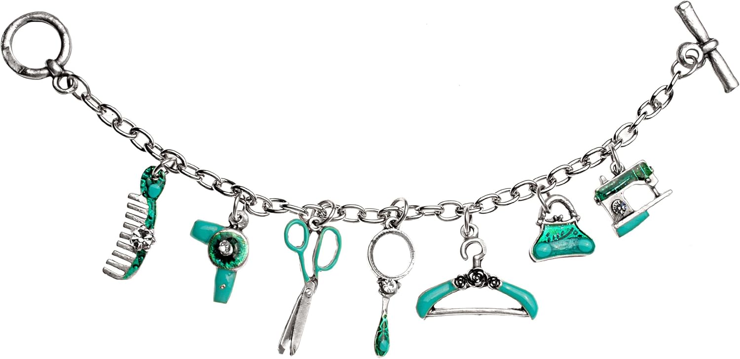 REALE fatto a mano ___ prodotto nell'Unione Europea (UE): ______ bellissimo "braccialetto con ciondolo" di alta qualità e molto stabile con fantastici pendenti e ciondoli ___ (ideale per BAMBINI) / ____ motivo: "forbici - borsa - macchina da cucire" ___ colore: turchese - blu e argento lo SPECIALE: questi braccialetti hanno 7 bellissimi pendenti (pettine + asciugacapelli + forbici + specchio + gruccia + macchina da cucire + borsa) con dettagli amorevoli ed elaborati (ad es. quadri, glitter & pietre di cristallo - che brillano e brillano meravigliosamente _ e molto altro ancora) __ i ciondoli sono saldamente integrati nel braccialetto ___ i motivi brillano meravigliosamente alla luce il cinturino a catena è di altissima qualità ___ è anche regolabile in lunghezza _____ il braccialetto è adatto a bambini e adulti ____ il braccialetto è chiuso con una chiusura molto stabile e durevole, facile da chiudere Chiusura a ginocchiera Qualità PREMIUM: __ ipoallergenico -> adatto a chi soffre di allergie - SENZA RUGGINE - senza nichel ___ metallo prezioso di alta qualità (utilizzando il processo speciale più moderno -> riccamente rivestito in argento) la lunghezza di un braccialetto è di circa 20 cm __ / può anche essere accorciato individualmente __ il pendente con motivo è lungo tra 1,2 cm e 3,2 cm (viene misurato solo il motivo) / __ ideale per TUTTE le età - per bambini e adulti! ___ / ___ questo braccialetto è disponibile anche in altri colori e c'è anche una collana lunga da abbinare ___ un fantastico regalo per il rientro a scuola, battesimi e compleanni!