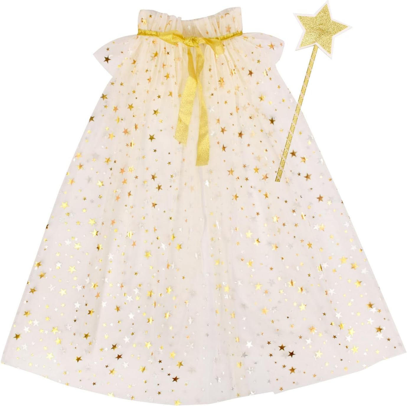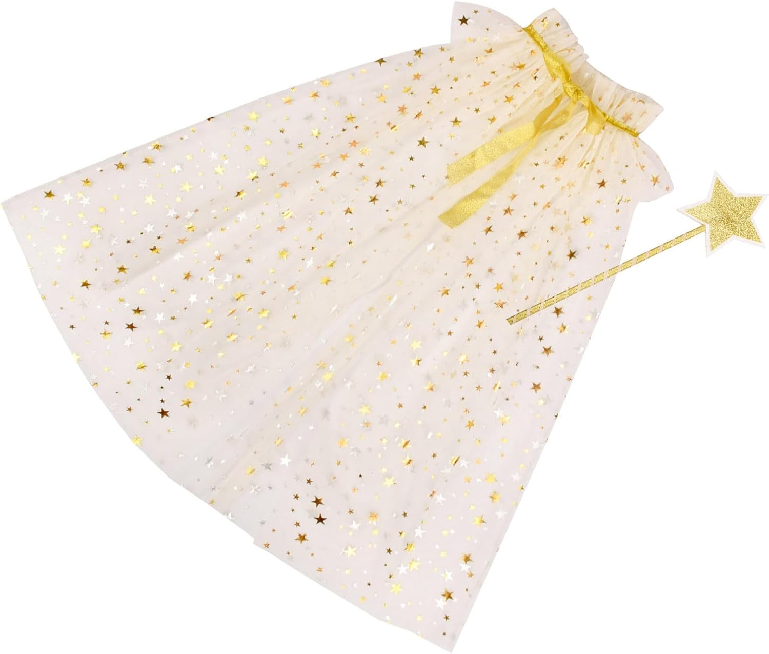 2 Set Girls Magical Star Wand e Cape Tulle, perfetto per accendere l'immaginazione Craft dal tulle leggero e morbido, mantello è adornato con stella, mentre scollatura regolabile garantisce vestibilità comoda Ottimo per feste compleanno, cosplay, spettacoli teatrali o servizi fotografici, questo set costumi promette creare ricordi indimenticabili e momento affascinante Progettato per i bambini, rendendo ottimo per le sognanti e aspiranti Dai dono magico con questo set bacchette e mantello, accessorio must per collezione fantasy qualsiasi bambino, assicurando che distinguano in folla in qualsiasi occasione del festival