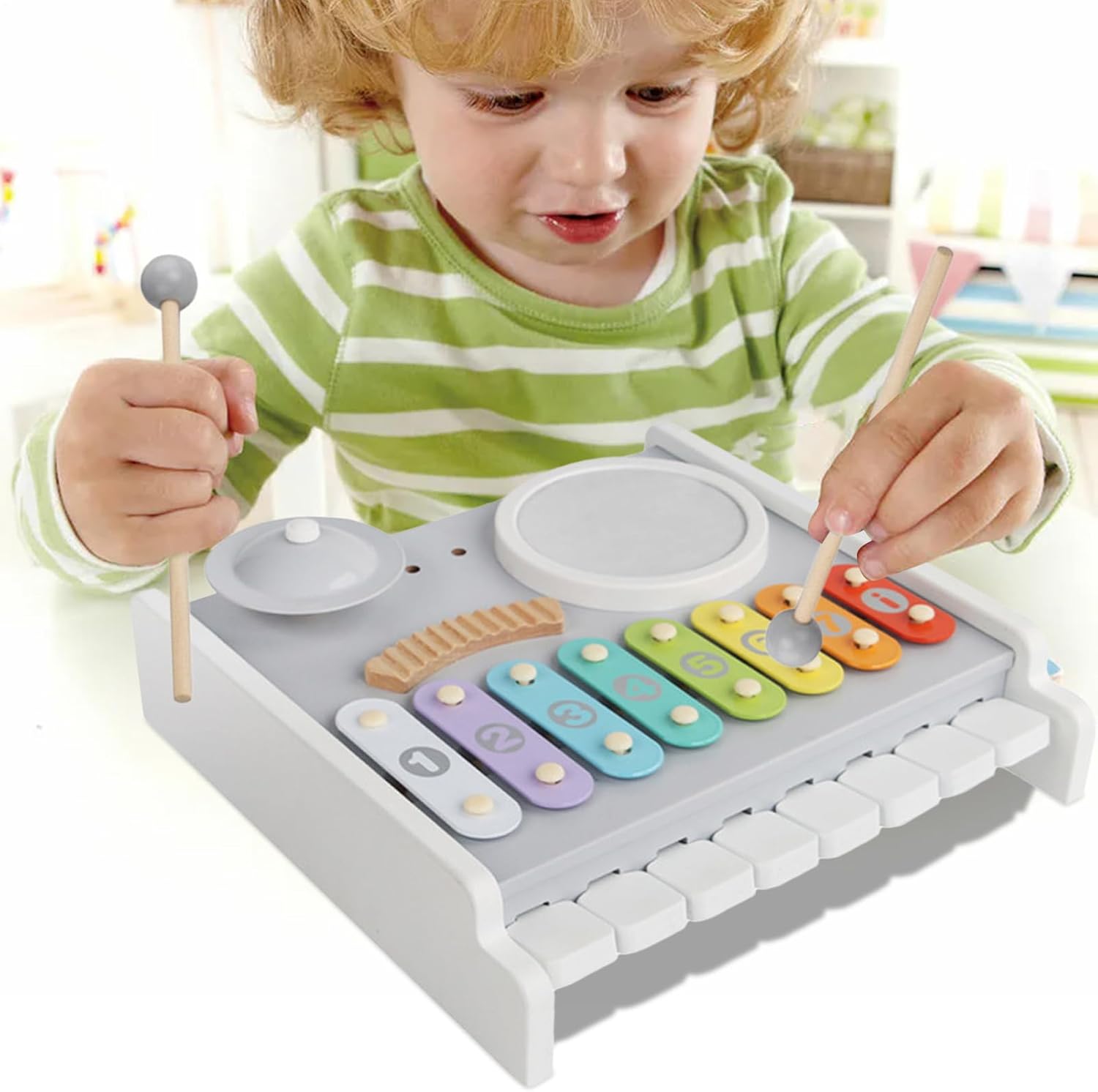 Facile da Pulire e Manutenere: Il per bambini presenta un materiale in legno semplice da pulire, garantendo che rimanga igienico e attraente per periodi prolungati, ideale per stanze dei giochi o uso all aperto la pulizia è essenziale e riduce la manutenzione genitori con superfici resistenti. Promotore del Ritmo: Il giocattolo per bambini favorisce lo sviluppo del senso ritmico e della percezione nei piccoli attraverso attività di gioco coinvolgenti e divertenti. Questo strumento musicale educativo supporta lesperienza di apprendimento della musica, potenziando al conle abilità di ascolto essenziali per il futuro educativo e per lespressione creativa durante il di gioco, incoraggiando la crescita armoniosa con momenti di gioia e scoperta. Gioco di Percussione Interattivo: Progettato per il gioco di percussione interattivo, questo incoraggia i bambini a costruire abilità di sviluppo attraverso il tapping ritmico, che rafforza le capacità motorie fini e migliora la coordinazione occhio-mano in ambienti musicali giocosi, promuovendo l'apprendimento attivo e la coordinazione attraverso l'esplorazione sonora e il movimento. Giocattolo Musicale Multifunzionale: Combinando , tamburo e campanelli, questo per bambini supporta il gioco musicale interattivo fornendo esperienze sonore multiple, rendendolo ideale per migliorare l'apprendimento sensoriale e le interazioni di gruppo divertenti a feste o asili , i bambini possono scoprire la gioia della musica insieme. Sviluppo Sensoriale Stimolante: Con tonalità vivaci e barre tonali etichettate, lo per bambini supporta l'educazione precoce incoraggiando la crescita sensoriale attraverso attività musicali interattive. per il gioco di gruppo o la scoperta autonoma, questo giocattolo educativo aiuta a sviluppare il riconoscimento dei colori e la consapevolezza del suono, promuovendo abilità cognitive e percettive in momenti di gioco piacevoli a casa o all'asilo.