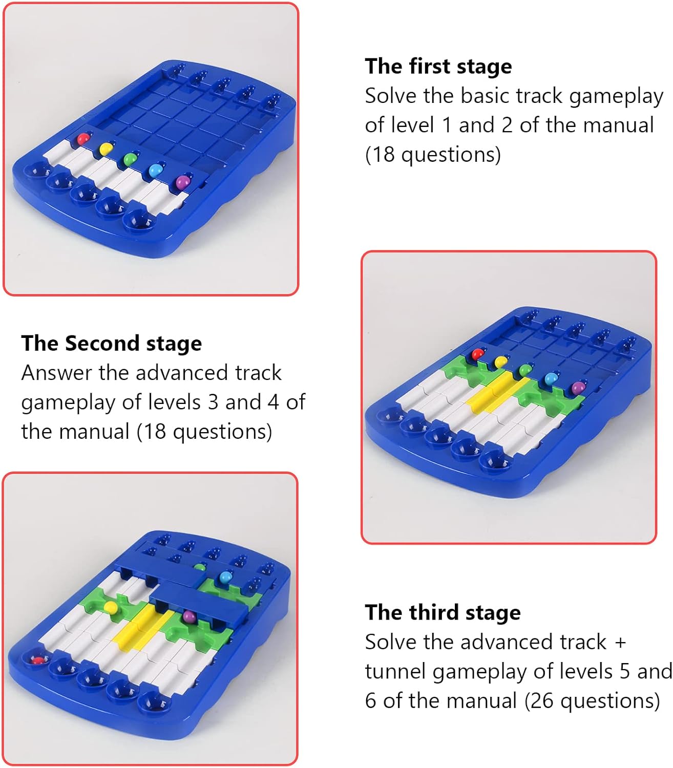 Materiale durevole: realizzato in materiale ABS di alta qualità, durevole, resistente alla caduta, all'usura e alla lunga durata, ha un aspetto più raffinato. Pezzi di puzzle lisci sicuri per le mani dei bambini accessori multipli assemblaggio gratuito sviluppano le capacità motorie dei bambini pensiero critico capacità di risoluzione dei problemi giocattoli educativi allenamento del cervello STEM apprendimento giochi divertenti 60 livelli di sfida con difficoltà crescente, il modulo con pista a sfera aumenta gradualmente man mano che le domande progrediscono da semplici a complesse, ideale per l'allenamento del cervello e il giocattolo educativo per l'apprendimento STEM per bambini Rompicapo Puzzle Game Divertente Gioco da tavolo per famiglie Abbinamento colori Allenamento di abilità Giocattolo educativo per bambini Bambini Ragazzi Ragazze Gioca Preparazione del gioco Puzzle modulari Soluzione da tavolo Palline rotanti manuali Fori colorati L'obiettivo del gioco è guidare la pallina colorata nel foro del colore corrispondente. I giocatori possono seguire i percorsi manuali di risposta inclusi o creare i propri percorsi unici per risolvere problemi creativi, sfide educative di puzzle per bambini