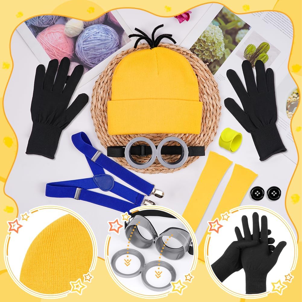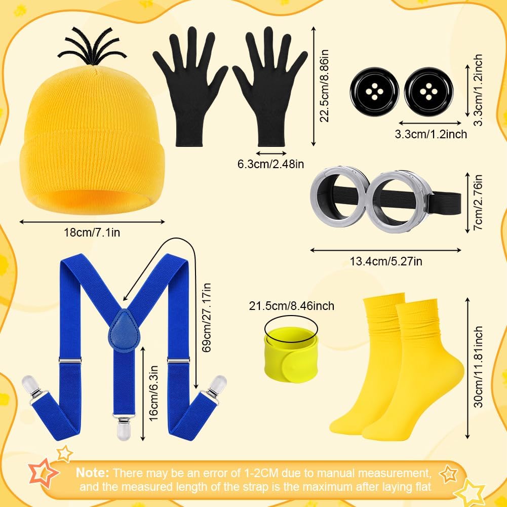 CARATTERISTICA: -Set di costumi da gioco di ruolo per bambini ispirati ai personaggi dei cartoni animati, che ricreano perfettamente lo stile dei protagonisti del film. - Adatto per feste di Halloween, giochi di ruolo con i cartoni animati, feste in maschera, feste a tema, carnevale, ecc. -Perfetti da indossare tutto l'anno, i tuoi piccoli non mancheranno di sfoggiare le loro bizzarre risate in ogni occasione. SPECIFICA: Specifiche dell'imballaggio: 27*21*2,1 cm Quantità: set da 3 pezzi (1 paio di guanti neri + 1 cappello + 1 tuta) Taglia: L 1*Cappello: Circonferenza del cappello: 46-60 1*Guanti Lunghezza del guanto: 19,5 cm Materiale: 100% poliestere Colore: Giallo AVVISO: 1. Poiché le dimensioni vengono misurate manualmente, si prega di considerare un margine di errore di 1-3 cm. 2. A causa della differenza con il display, potrebbe esserci una certa differenza di colore. Fare riferimento al colore reale.