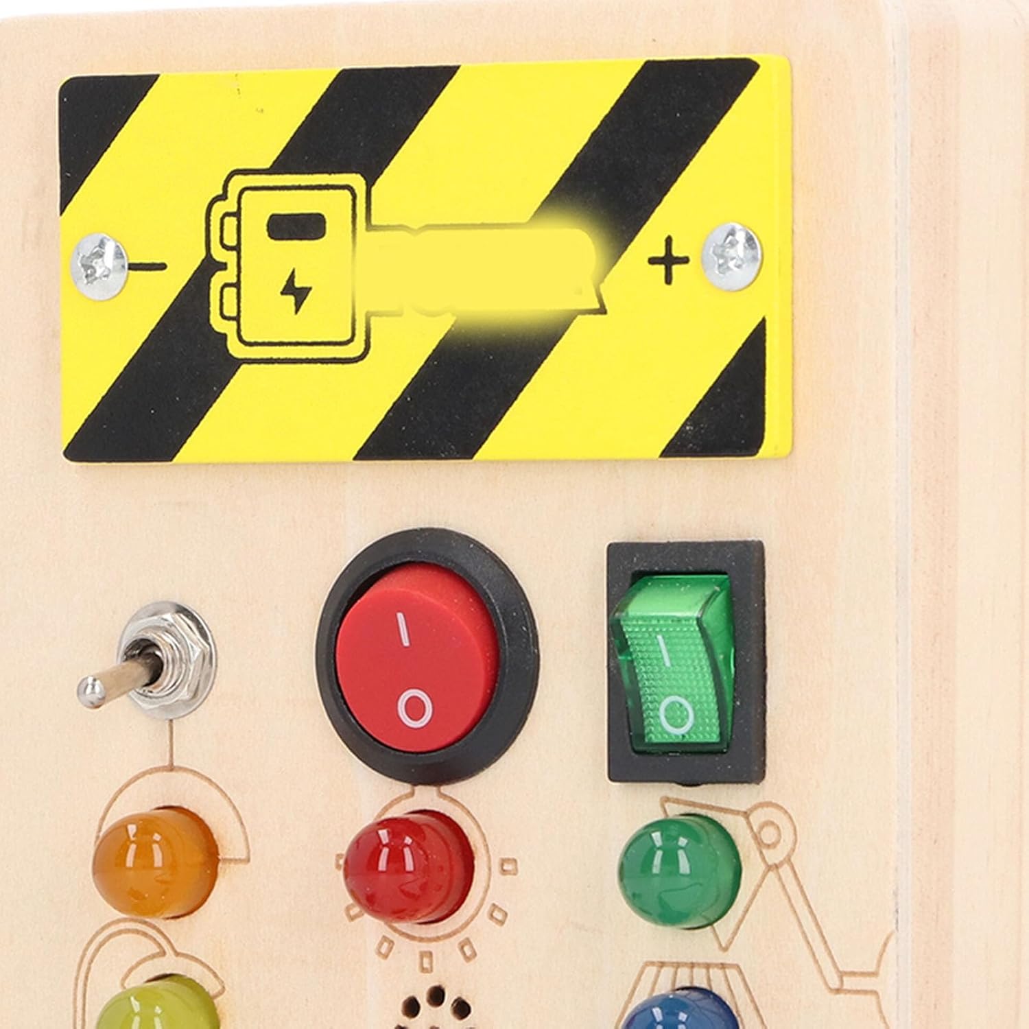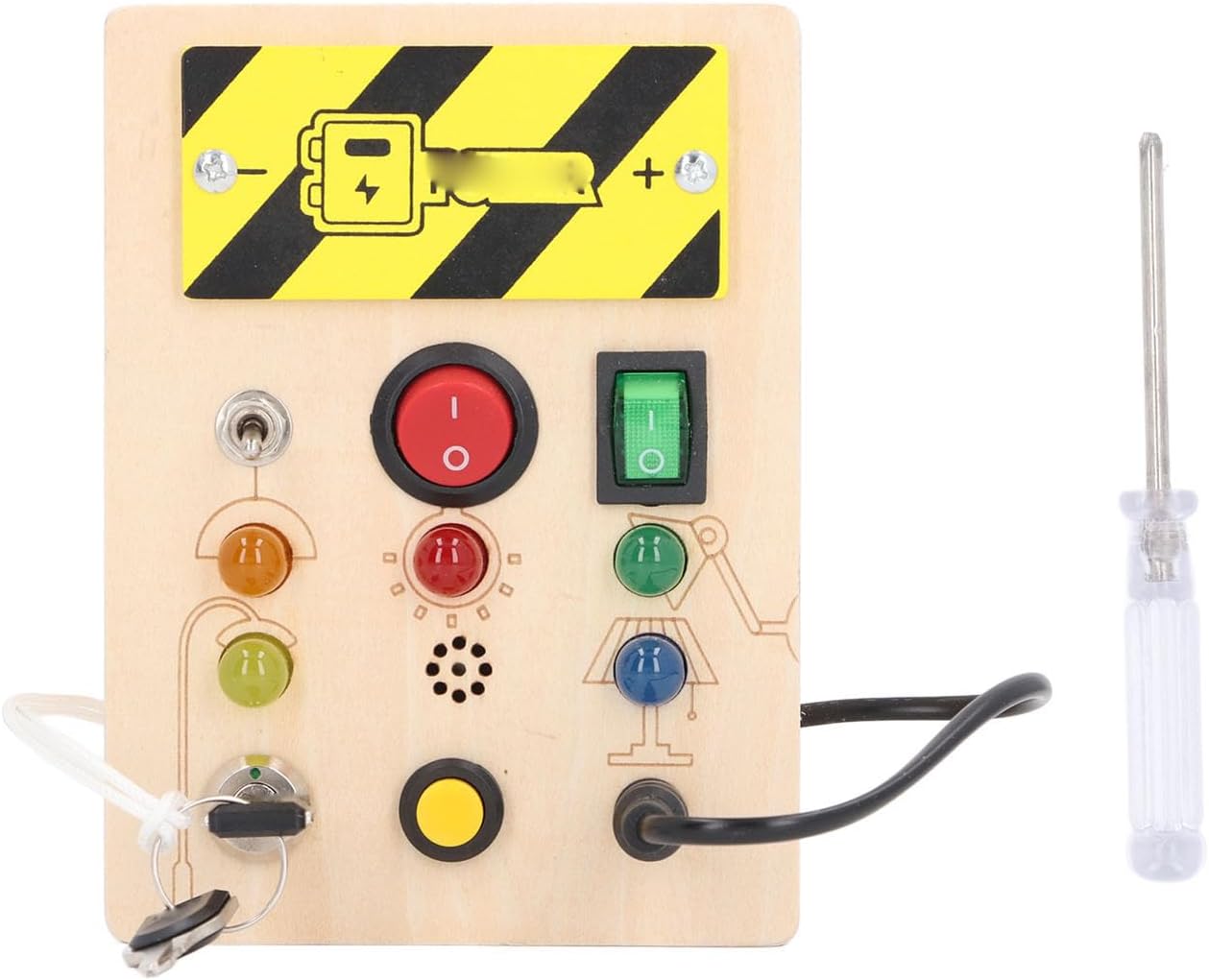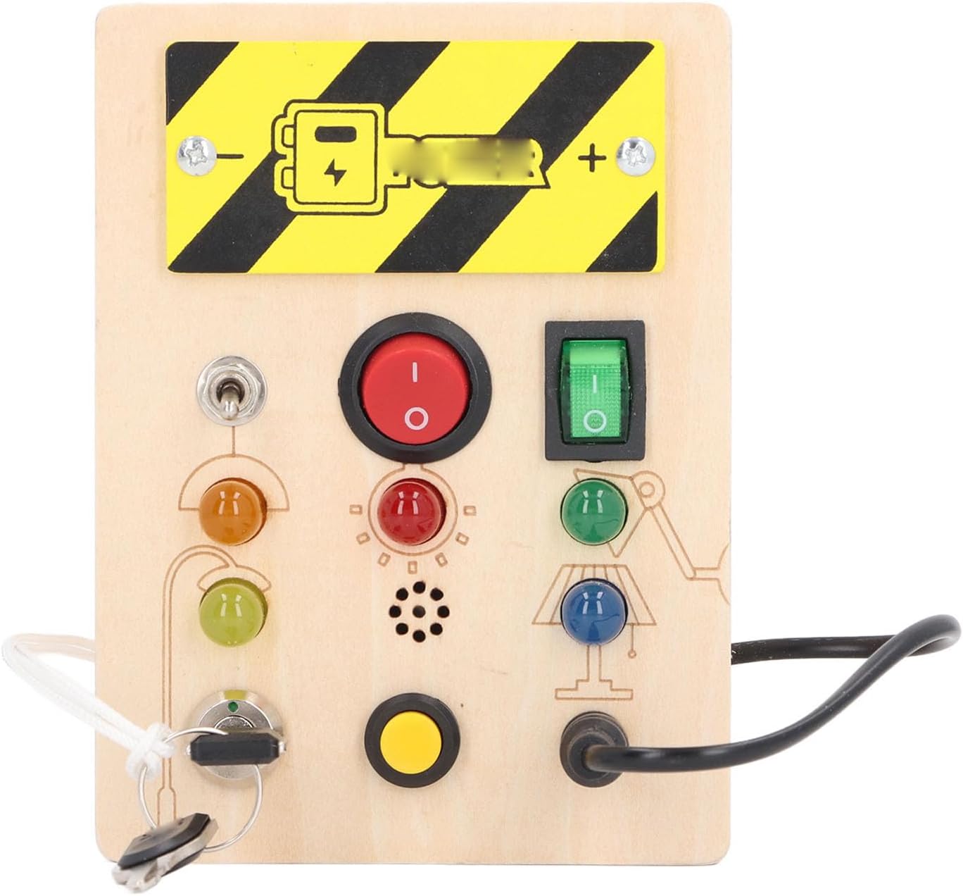 EDUCATIVO: il ricco design di luci e colori può allenare il pensiero e le capacità sensoriali dei bambini, il riconoscimento dei colori e la coordinazione occhio-mano. La dimensione del pulsante è adatta affinché i bambini imparino giocando. INTERESSANTE: il giocattolo da tavolo con attività a LED porta più divertimento al tuo bambino, può tenerlo occupato per un'ora, richiede 2 batterie AAA (non incluse), adatto a bambini dai 36 mesi in su. IDEALE: con ricche funzioni, questo giocattolo per le abilità motorie può essere un ideale per preparare una sorpresa per i tuoi bambini in occasione di compleanni, Natale, Festa dei bambini e altre feste. INTERRUTTORI MULTIPLI E LUCI LED: il giocattolo da tavolo per attività per bambini è dotato di più interruttori e luci LED (luminosità morbida). Progettato con una serratura a chiave simulata e un cavo collegabile. LAVORAZIONE PREGIATA: il giocattolo in legno a LED per bambini non è incollato ed è lucidato a strati per garantire una superficie priva di bave e senza piccole parti che possono cadere facilmente, rendendolo sicuro e durevole.