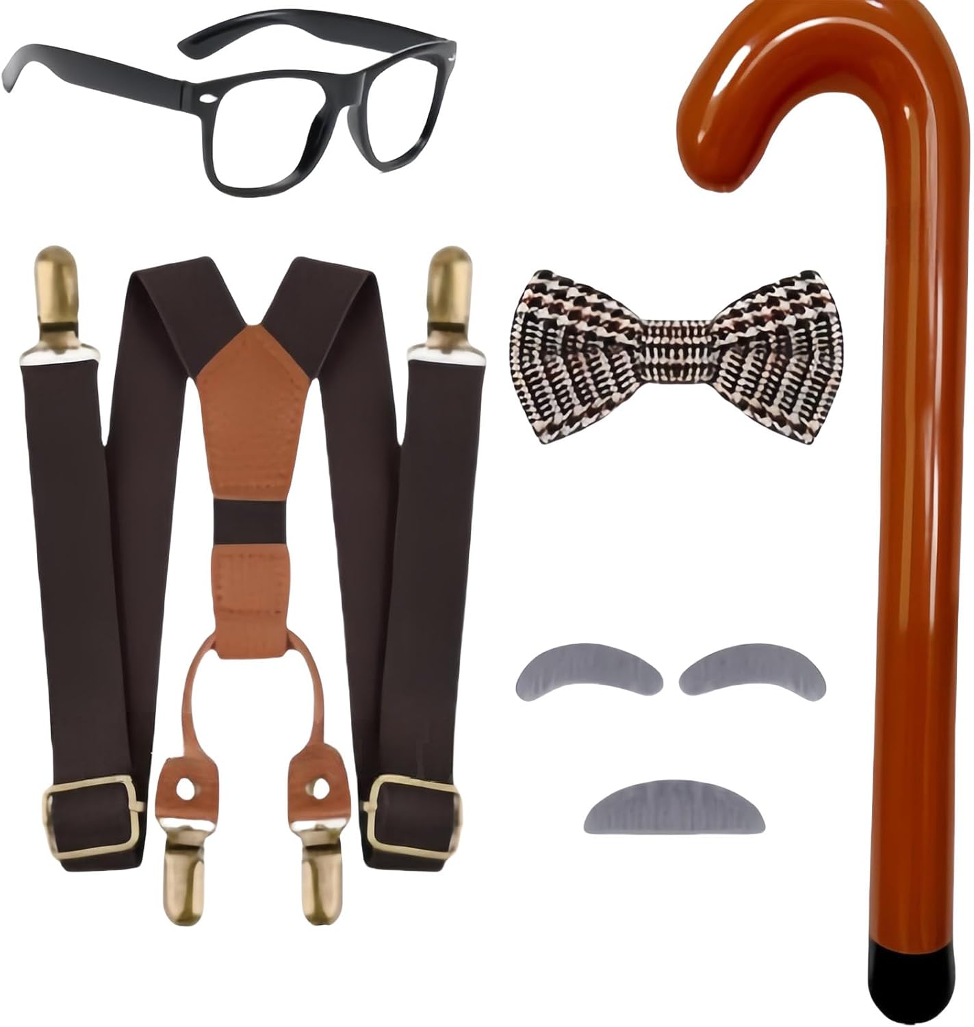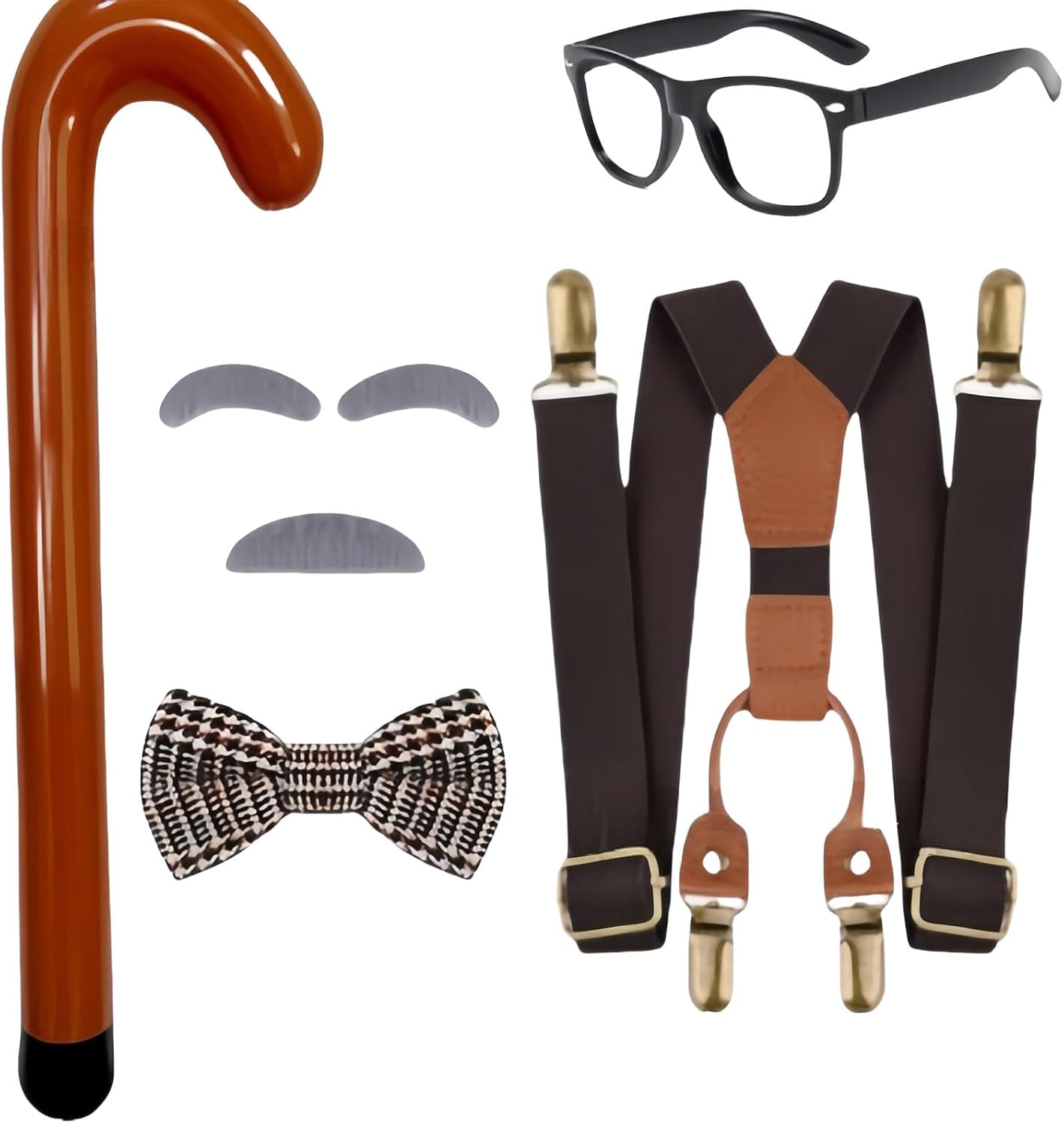 Bambini Vecchio Uomo Cosplay Accessorio Con Barba Sopracciglia Papillon Occhiali Bretelle Giocattolo Cane Halloween Nonno Costume Per Il Ragazzo Caratteristiche: Trasforma il tuo bambino in nonno con gli accessori per costume da nonno, con barba artificiale, bastone da passeggio giocattolo, occhiali, papillon e bretelle per un look autentico. Realizzate in poliestere, le bretelle regolabili e il papillon garantiscono una vestibilità comoda, mentre gli occhiali da vista e i baffi artificiali aggiungono un tocco realistico al tuo vestito da vecchio uomo. Adatto per bambini, ragazzi, bambini che amano giocare di ruolo, vestirsi, questo set di costumi cosplay per bambini è ideale per i ragazzi che cercano di esplorare il gioco fantasioso. Ampiamente usati per feste scolastiche, spettacoli teatrali, feste cosplay, Halloween, Natale, eventi di gioco di ruolo, questi accessori per costumi da vecchio portano un tocco giocoso in ogni occasione, rendendolo un'aggiunta essenziale per varie celebrazioni. Questo set di costumi da nonno per cosplay da uomo anziano non solo offre divertimento, ma serve anche come regalo unico di Halloween, incoraggiando la creatività durante riunioni a tema o 100 giorni di evento scolastico. Specifiche tecniche: Componente: panno in poliestere. Dimensioni degli occhiali: circa 13 x 4 x 13 cm. Dimensioni papillon: ca. 9 x 5 cm. Dimensioni del bastone da passeggio: circa 74 cm. Dimensioni delle sopracciglia: ca. 80 mm. Dimensioni della barba: circa 85 mm. Peso: circa 210 g. La confezione include: 1 papillon. 1 bastone giocattolo. 1 paio di occhiali. 1 bretelle. 1 set di barba e sopracciglia artificiali. Nota: Si prega di considerare un margine di errore di 0-1 cm a causa della misurazione manuale. 2. L'immagine potrebbe non rispecchiare il colore reale a causa delle diverse impostazioni dei monitor