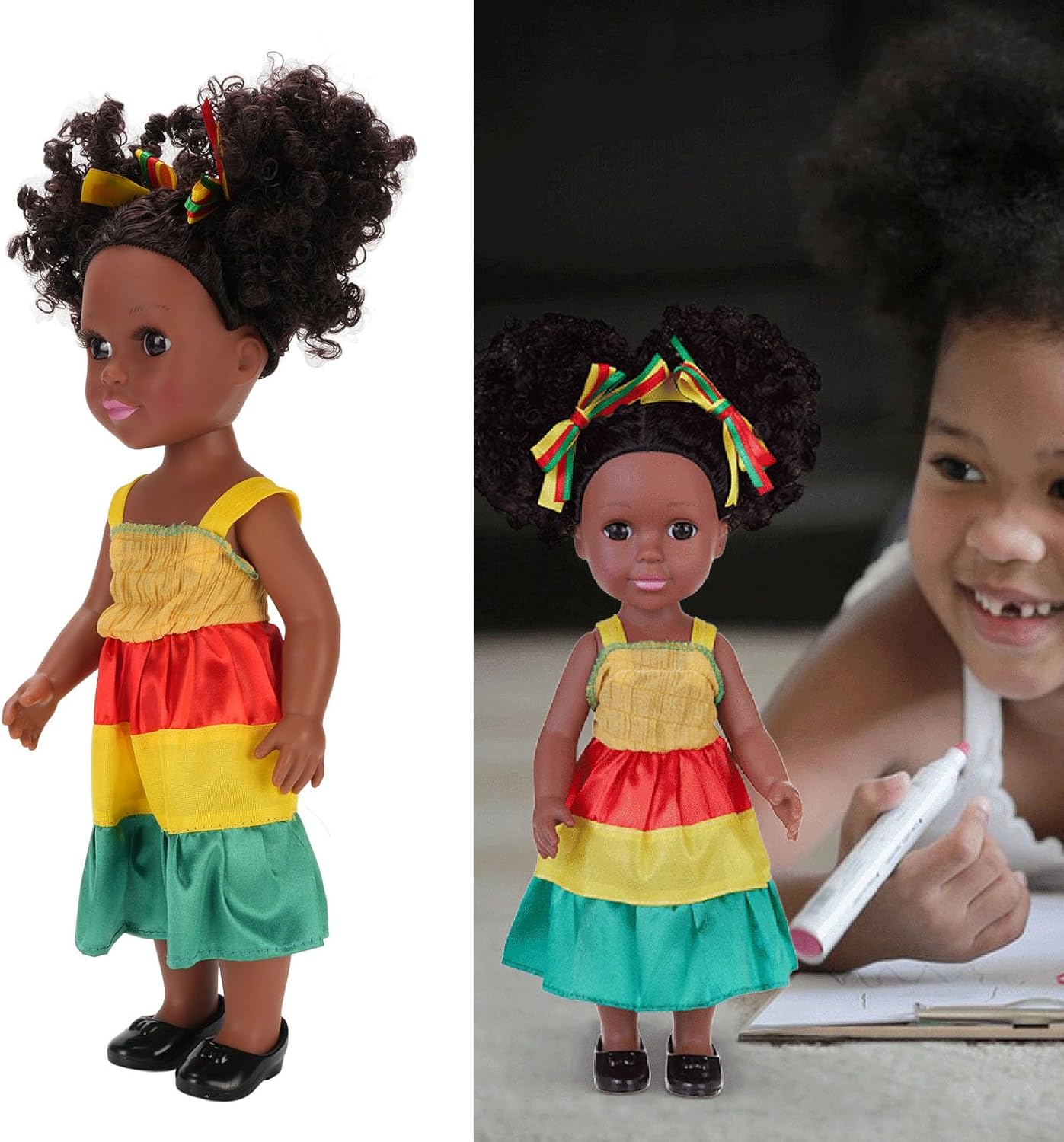 Realizzata meticolosamente: alta 14 pollici, questa bambola nera presenta dettagli squisiti, che la rendono un'aggiunta bella e realistica a qualsiasi collezione di giocattoli per . Acconciatura afro alla moda: il design dei capelli esplosivi alla moda e divertente distingue questa bambola e consente ai bambini di celebrare e celebrare bellezza e stile diversi durante il loro tempo di gioco. Divertimento mescola e abbina: i vestiti della bambola sono rimovibili, consentendo di indossare diversi bellissimi abiti (non inclusi), aggiungendo un ulteriore livello di divertimento ed eccitazione al suo tempo di gioco. Materiali sicuri: questa bambola africana realizzata con materiali plastici morbidi adatti ai bambini offre ai genitori tranquillità e garantisce che il tempo di gioco sia confortevole. Incoraggia l'interazione genitore-figlio: attraverso il gioco fantasioso, le loro mani possono sviluppare abilità e creatività e promuovere momenti significativi tra genitori e figli.