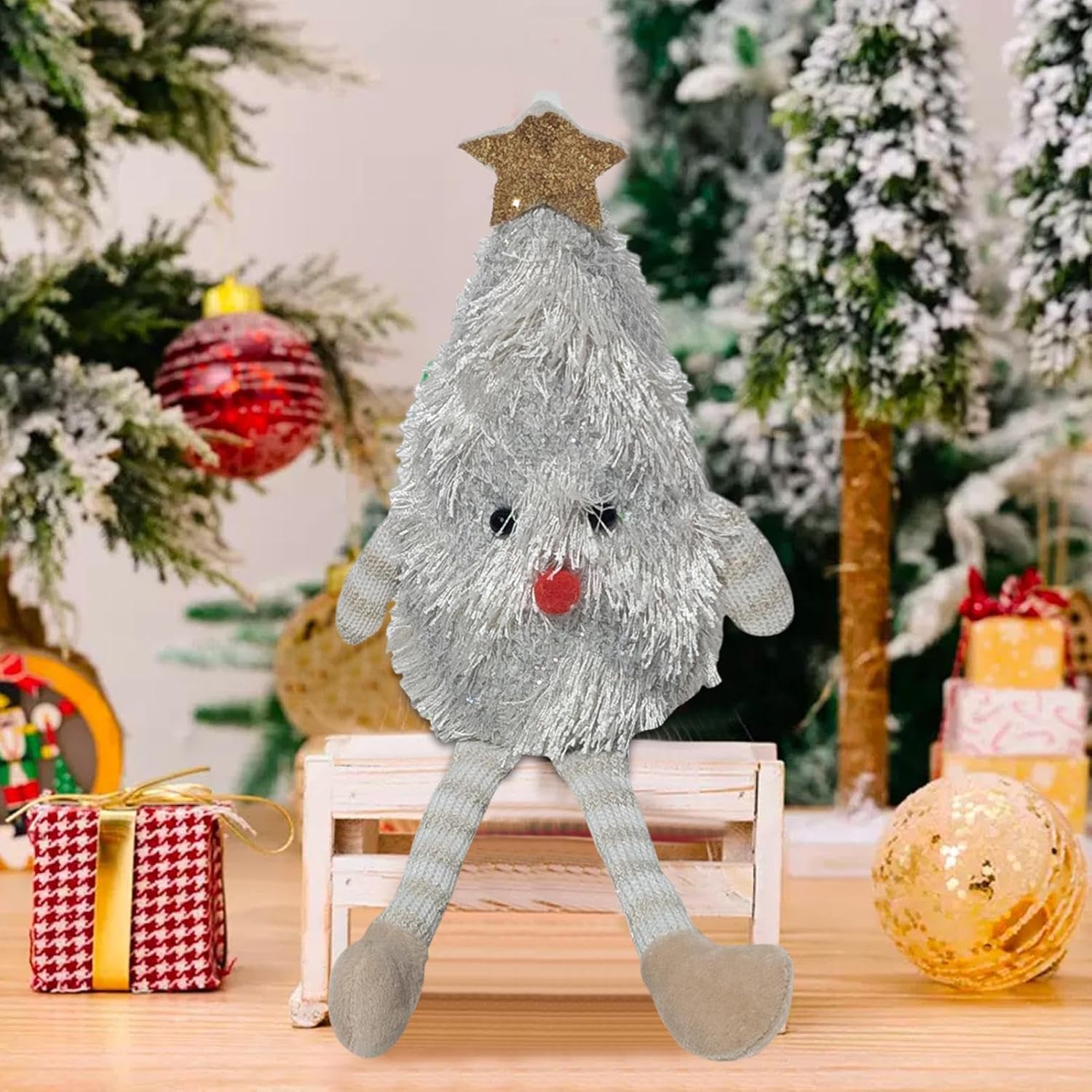 Decorazione natalizia perfetta: i graziosi peluche natalizi con estetica natalizia 3D a forma di soffice albero combinano fascino e funzionalità per arricchire il tuo ambiente stagionale. Ambiente natalizio: la decorazione senza tempo del design dell'albero con dettagli a stella e pompon crea un'atmosfera invitante e aumenta il calore festivo in ogni stanza durante le vacanze. Stabilità ottimizzata: la stabilità concentrata grazie all'imbottitura in cotone elastico e al fondo solido impedisce in modo affidabile il ribaltamento dei peluche natalizi mantenendo la stessa forma e orientamento. Idoneità all'uso quotidiano: progettati per feste, regali e accessori per la casa: i peluche Babbo Natale diffondono un'atmosfera festosa su scaffali, tavoli e scrivanie attraverso un'integrazione flessibile nella vita quotidiana. Morbido materiale di peluche: peluche corto di alta qualità con superficie liscia e calda, non irritante per la pelle dei bambini e ideale per la decorazione natalizia