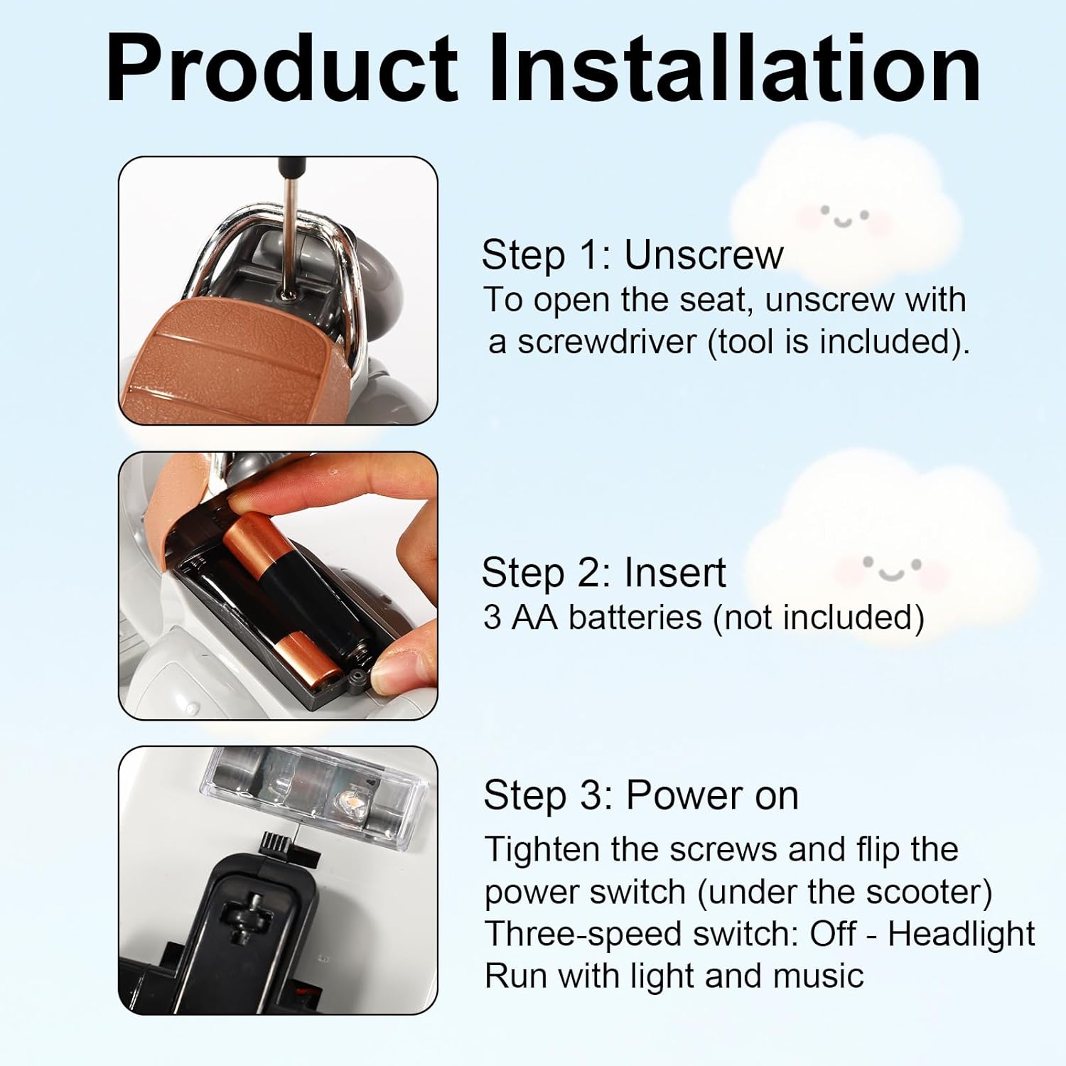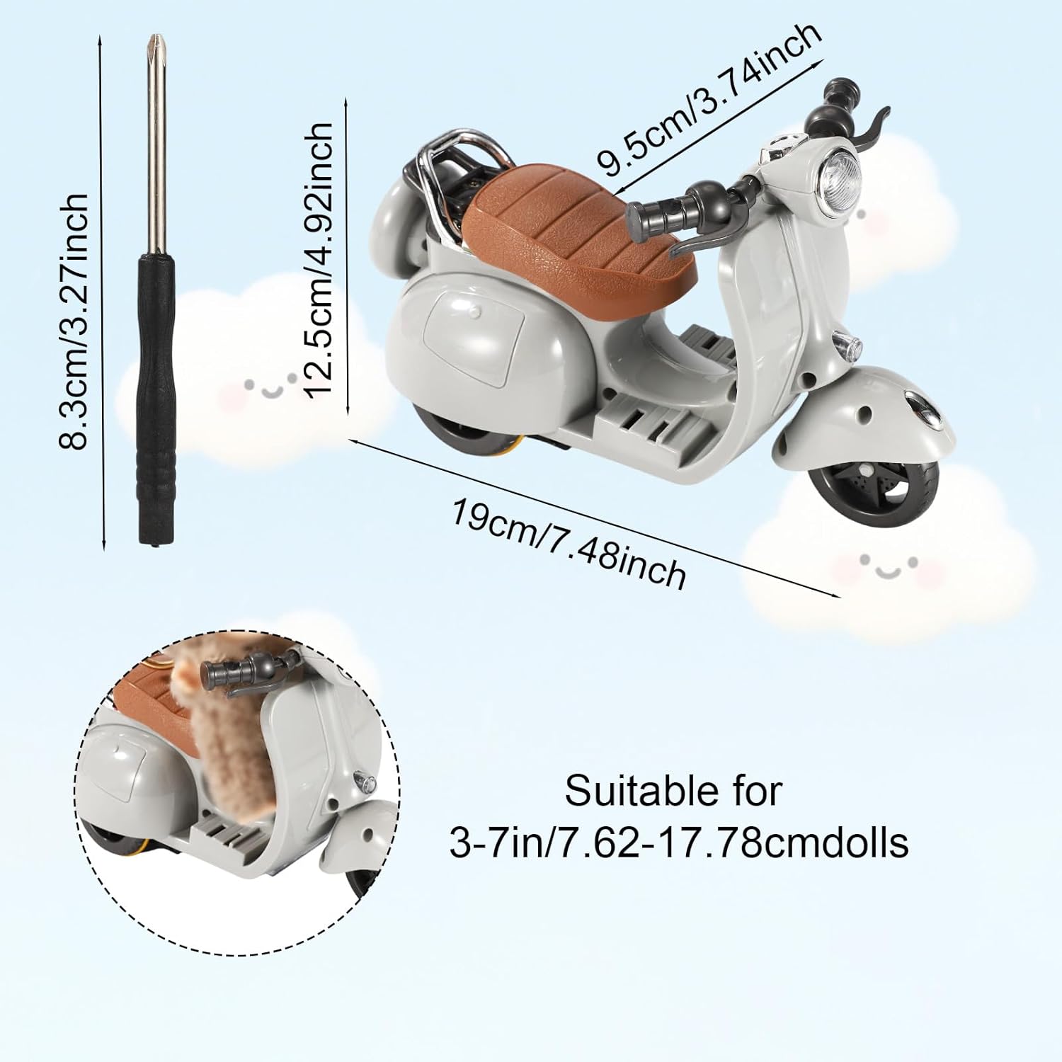 Elenco prodotti: Riceverai uno scooter per bambola e un cacciavite, con un'estetica carina e alla moda che si adatta alla tua bambola. Materiale del prodotto: il giocattolo dello scooter per bambole è realizzato in plastica di buona qualità, affidabile, robusto, non facile da danneggiare e le buone prestazioni ti consentono di esporlo o giocarci a lungo. Dimensioni del prodotto: le dimensioni del giocattolo monopattino per bambole sono circa 19x12,5x9,5 cm, il che è molto adatto per bambole da 7,62 a 17,78 cm. Design eccellente: adotta un design con funzione di rotazione dinamica, che può ruotare fluidamente sul posto, abbinato a musica e luci allegre. Può aggiungere un elemento accattivante a giochi e display. Regalo ideale: il giocattolo dello scooter per bambole è molto adatto per decorare la tua bambola su una scrivania, una libreria o qualsiasi vetrina ed è molto adatto come regalo per collezionisti di bambole o amici.