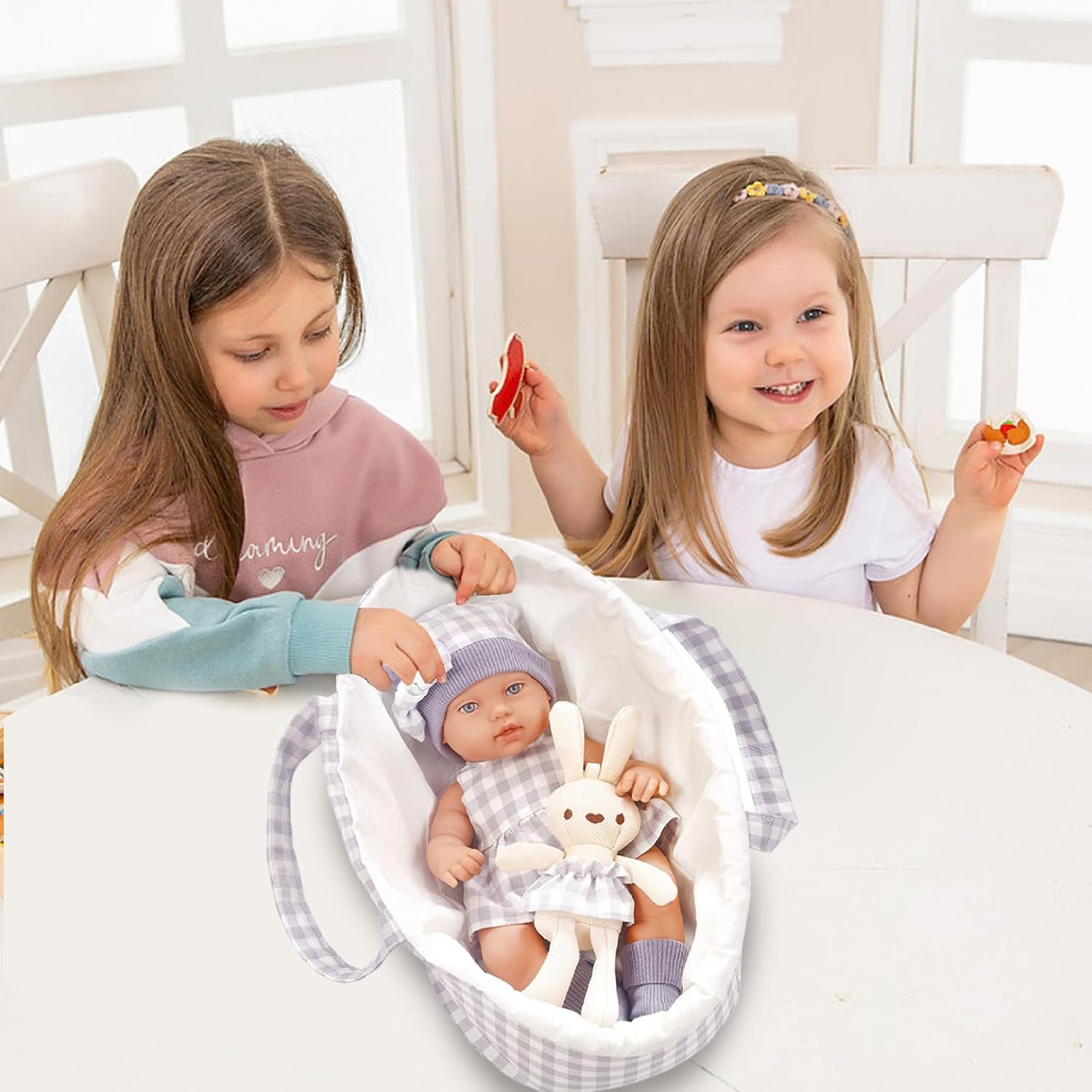 Dimensioni perfette per i più piccoli: a 12 pollici, la bambola è leggera e facile da trasportare, abbracciare e vestirsi, rendendola un compagno ideale per i bambini di età pari o superiore a 3 anni. Materiali affidabili e sicuri: realizzati con materiali per bambini, non tossici e affidabili, questo set di bambole per bambini è sicuro per il gioco quotidiano e costruito per resistere alle ore di cura e maneggevolezza amorevoli. Set di accessori completi: viene fornito con un letto di culla e un adorabile giocattolo di coniglietto, fornendo tutto ciò che i bambini hanno bisogno per fare finta attività di gioco e di gioco di ruolo che migliorano la creatività e l'interazione sociale. Incoraggia l'apprendimento ed empathys: giocare con bambole insegna responsabilità, empathys e comunicazione..I bambini possono giocare a ruolo come caregiver, aiutando a sviluppare l'intelligenza emotiva e le abilità sociali in modo divertente e coinvolgente. Design realistico della bambola per bambini: questa bambola da 12 pollici presenta dettagli realistici tra cui caratteristiche facciali espressive, corpo morbido e dimensioni realistiche, aiutando i bambini piccoli a sviluppare abilità nutritive attraverso un gioco fantasioso.