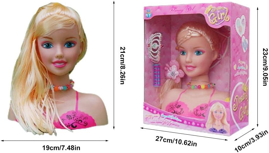 Materiale plastico durevole, resistente e non facile da danneggiare. Vieni con 17 accessori, vestiti come preferisci. Forte giocabilità, che consente ai bambini di imparare i capelli e il trucco mentre giocano, aumentando l'interazione genitore-figlio. Ambito di applicazione: casa dei giochi, trucco, travestimento. La dimensione della bambola è 21 x 19 cm / 8,26 x 7,48 pollici.