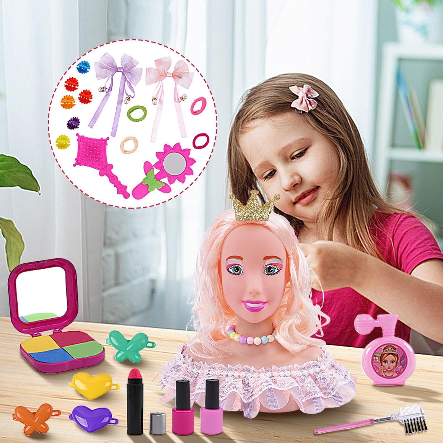 Vaste scelte di styling dei capelli: consenti ai tuoi bambini di tuffarsi nel mondo 'acconciatura con possibilità illimitate e più ore di gioco con il set di giochi di ruolo per ragazze. Questo set è progettato per stimolare la creatività e creare acconciature fantastiche, fornendo una via per l'espressione di sé e l'immaginazione durante il gioco Capelli sodi da spazzolare: bambole Fashionmaker incluse, dotate di capelli morbidi e sodi con per capelli per creare acconciature perfette; Il kit per lo styling assicura una spazzolatura facile e più divertente Migliora la creatività e le abilità: crea look unici per la bambola con il set di giocattoli per il trucco del gioco di ruolo, contenente una varietà di piccoli fermagli per capelli e e stimolando la creatività del tuo bambino Dimensioni su misura: con dimensioni di 8,5*18,5*20,5 cm/3,35*7,28*8,07 pollici, la bambola Makeup Head offre una presa perfetta per le mani dei più piccoli per acconciare i capelli con precisione, consentendo loro di imparare e bene le nuove tecniche senza sforzo Regalo ideale: sblocca la creatività e migliora le abilità di trucco e capelli con la bambola Makeup Head. Un fantastico regalo per bambini dai 3 anni in su, perfetto per compleanni, Natale, Ringraziamento e tutte le occasioni piacevoli