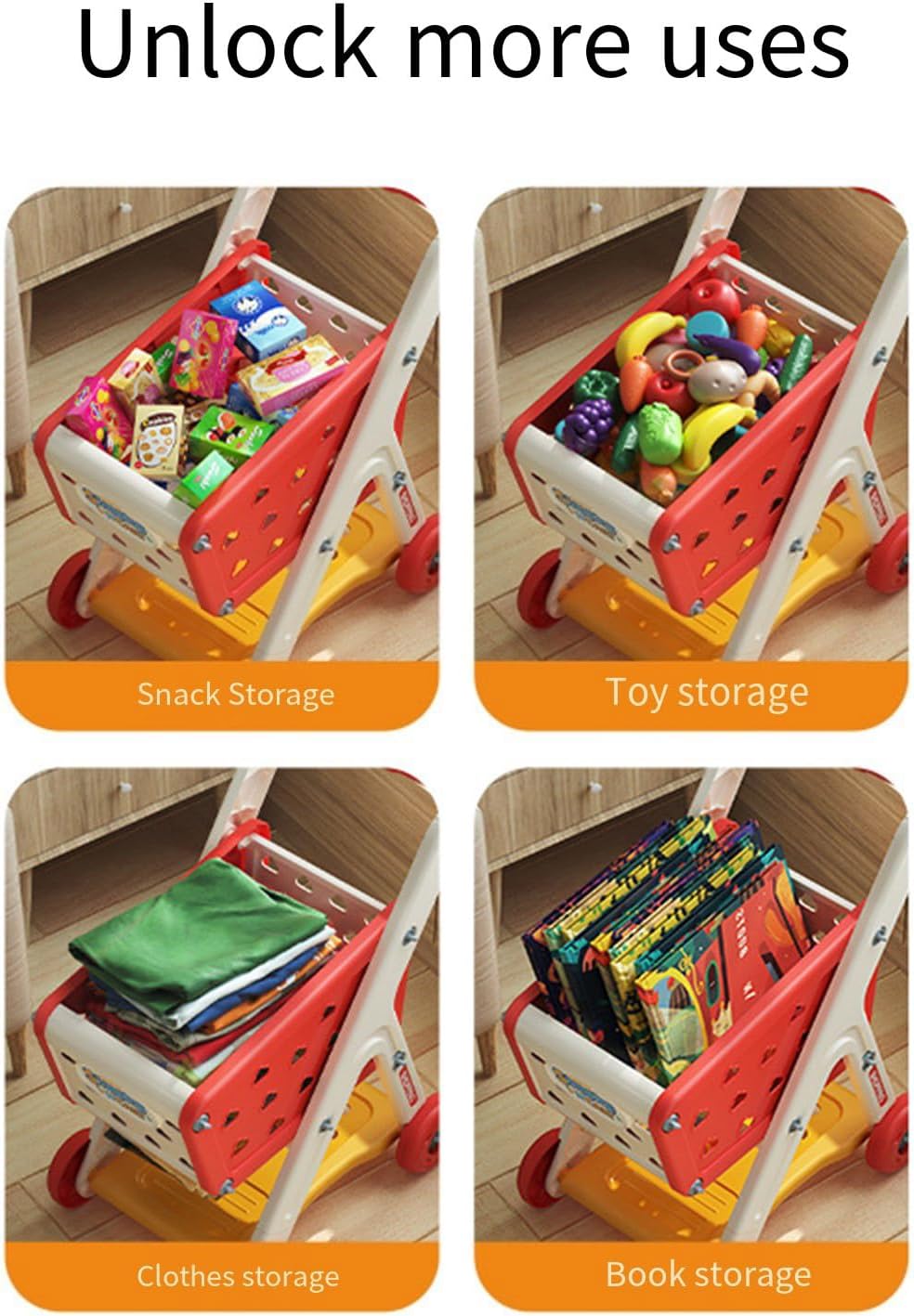Un design portatile, pieghevole e leggero, questo carrello garantisce durata e ore di gioco Adatto sia per giochi interni che esterni, è un'ottima aggiunta alle attività dell'asilo o al tempo di legame familiare Ideale per bambini dai 3 anni in su, soprattutto per coloro che amano i giochi di ruolo, questo carrello incoraggia l'indipendenza e lo sviluppo delle abilità sociali Non serve solo come un grande giocattolo, ma anche come un bel pezzo decorativo, rendendolo un bambino premuroso Questo carrello per bambole è un accessorio da gioco finto, per l'immaginazione e la creatività dei bambini con il suo design realistico e la struttura robusta