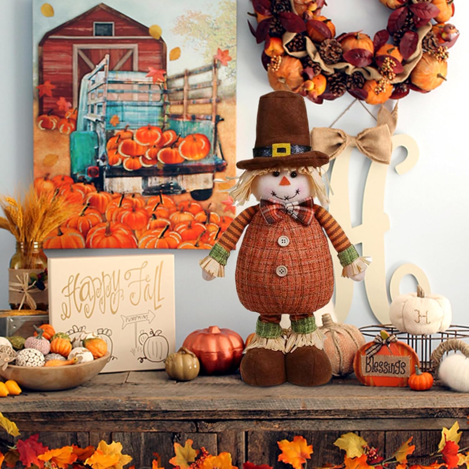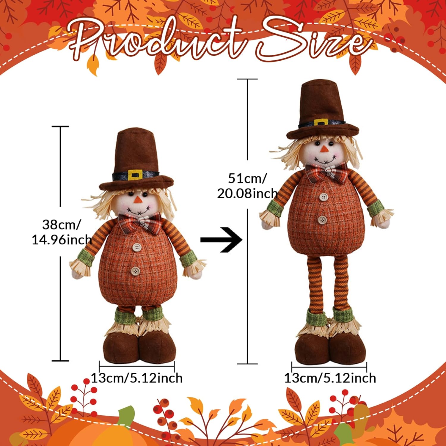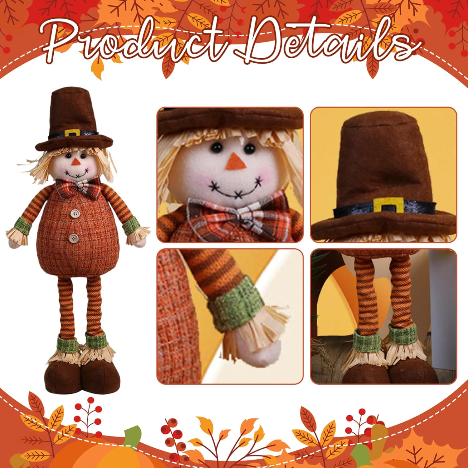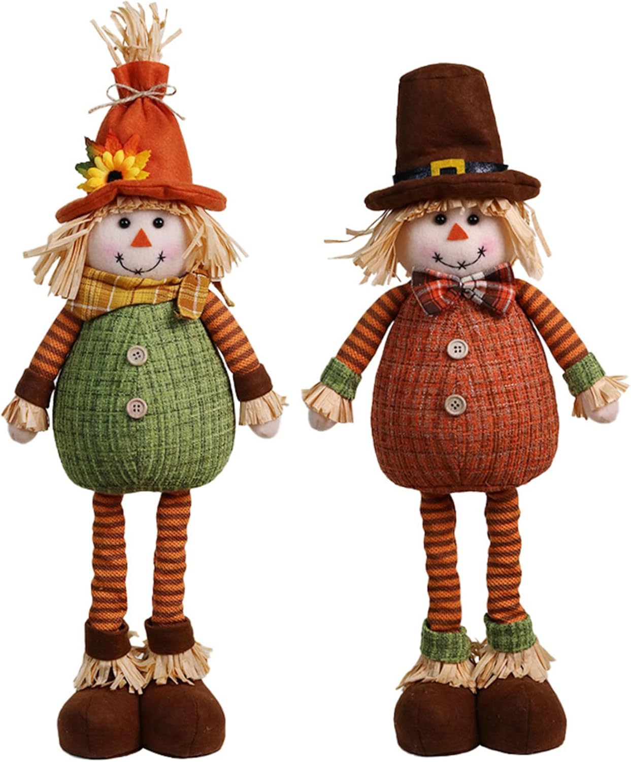 Design dettagliato e festoso: ogni spaventapasseri è decorato con dettagli divertenti, come cappelli di paglia, toppe in tessuto e vivaci colori autunnali, aggiungendo un tocco giocoso alle tue decorazioni del Ringraziamento o del raccolto. Altezze regolabili per un'esposizione versatile: con le gambe estensibili, queste bambole spettrali possono essere regolate a diverse altezze che vanno da 18,90 a 24,02 pollici, rendendole perfette per qualsiasi spazio espositivo, dai tavoli agli ingressi. REALIZZATE PER USO STAGIONALE: Realizzate in poliestere, queste decorazioni autunnali spaventapasseri sono progettate per mantenere la forma e il colore per tutta la stagione, garantendo che il tuo arredamento autunnale rimanga vibrante da settembre a novembre. Affascinanti incantatrici autunnali: questo set di bambole, caratterizzato da una figura maschile, aggiunge un tocco delizioso al tuo arredamento autunnale con le loro adorabili espressioni, vestiti carini e cappelli colorati.. Perfetto per dare un'atmosfera stravagante alla tua casa o al tuo giardino. Ideali per ogni occasione autunnale: che tu stia decorando per una celebrazione del raccolto, il Ringraziamento o semplicemente aggiungendo fascino stagionale al tuo spazio, queste bambole spettrali sono l'aggiunta perfetta a qualsiasi arredamento a tema autunnale.