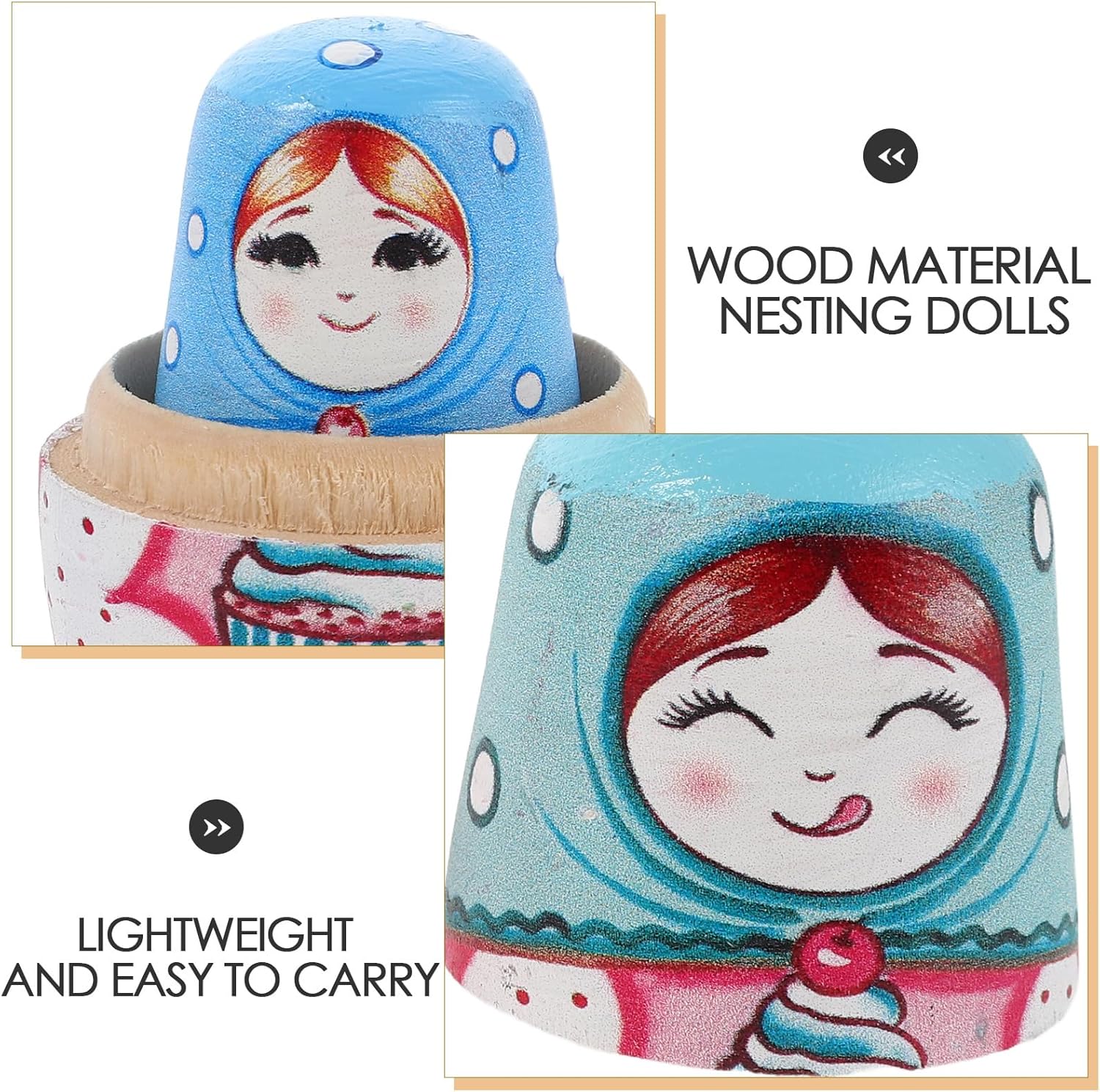 Bambole matrioska come opera d'arte culturale: dipinte a mano con dettagli intricati per rappresentare l'arte popolare russa e conferire a ciascuna un fascino speciale Bambole matrioska con design interattivo: la struttura a 6 strati della matrioska stimola lo sviluppo cognitivo dei bambini e migliora la loro destrezza Bambole a matrice di legno: realizzate in legno selezionato, accuratamente lucidate per una sensazione liscia che garantisce durata e longevità. Pratica portabilità delle bambole matrioska: facili da trasportare grazie al design leggero, perfette per i viaggi o giocare in casa, porta divertimento ovunque Apprendimento e gioco: combina intrattenimento ed educazione, aiuta i bambini a conoscere la cultura russa promuovendo l'interazione familiare