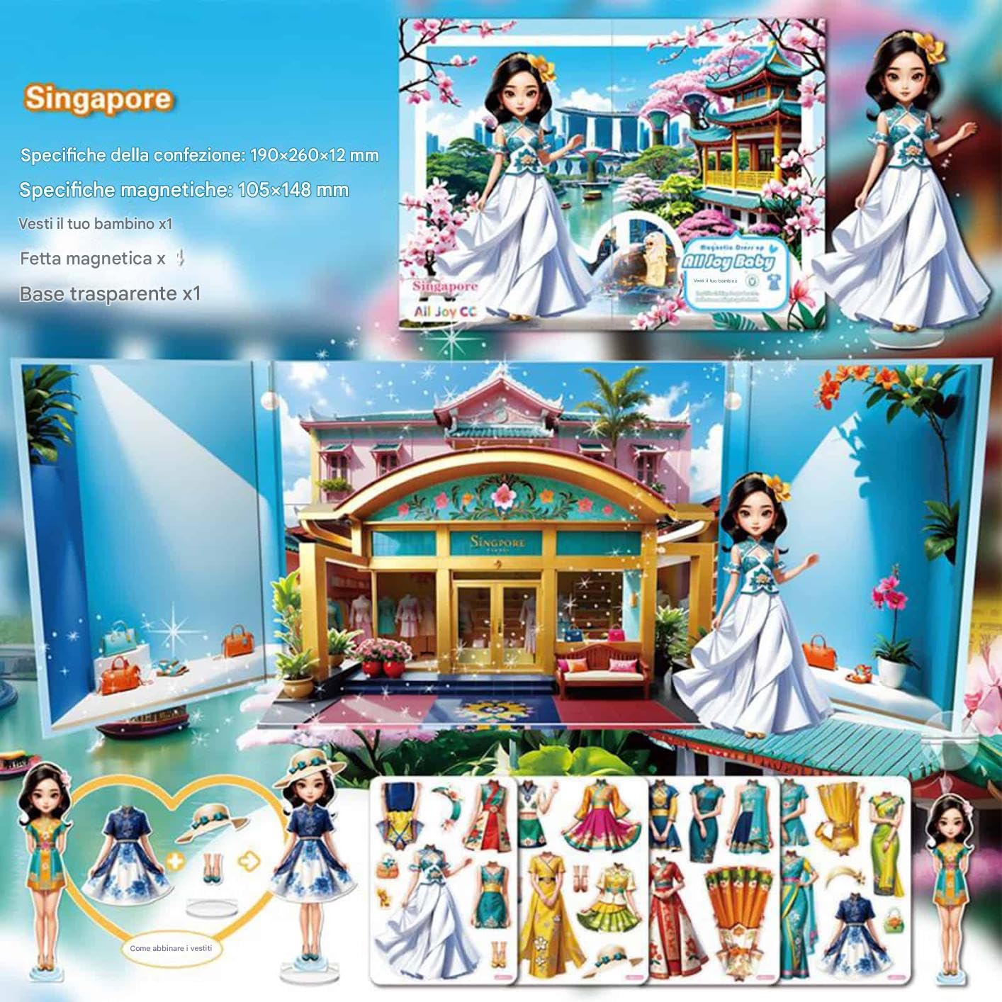 Gioco all'Aperto: Con una presa sicura per le mani dei più piccoli, questi giocattoli magnetici sicuri sono leggeri e portatili, offrendo divertimento immediato ovunque e intrattenimento senza preoccupazioni durante i viaggi o a casa Giochi di Travestimento Immaginativi: Set magnetici con combinazioni di abiti vari e completi, insieme a sfondi tematici principeschi, per un gioco coinvolgente che stimola la creatività e lesplorazione di storie fantastiche in modo divertente e senza fine Stimolo Creativo Magnetico: Questi giocattoli educativi offrono un'esperienza di gioco immersiva unendo puzzle silenziosi e attività di apprendimento colori per affinare la coordinazione occhio-mano in modo naturale, stimolando lo sviluppo logico attraverso sfide magnetiche coinvolgenti e interattive Divertimento Portatile: Giocattoli magnetici dress up combinano adesivi 3D per fondali e temi principesse per giochi di finzione creativi, garantendo intrattenimento coinvolgente e portatile durante i viaggi o a casa per bambine Regalo Fiabesco Creativo: I giocattoli magnetici per vestire sono ideali come regali natalizi e compleanno per bambini, con temi fiabeschi e design ispirati alle principesse, accendono l'immaginazione e esperienze di gioco divertenti durante il Natale o occasioni speciali per momenti di puro divertimento creativo