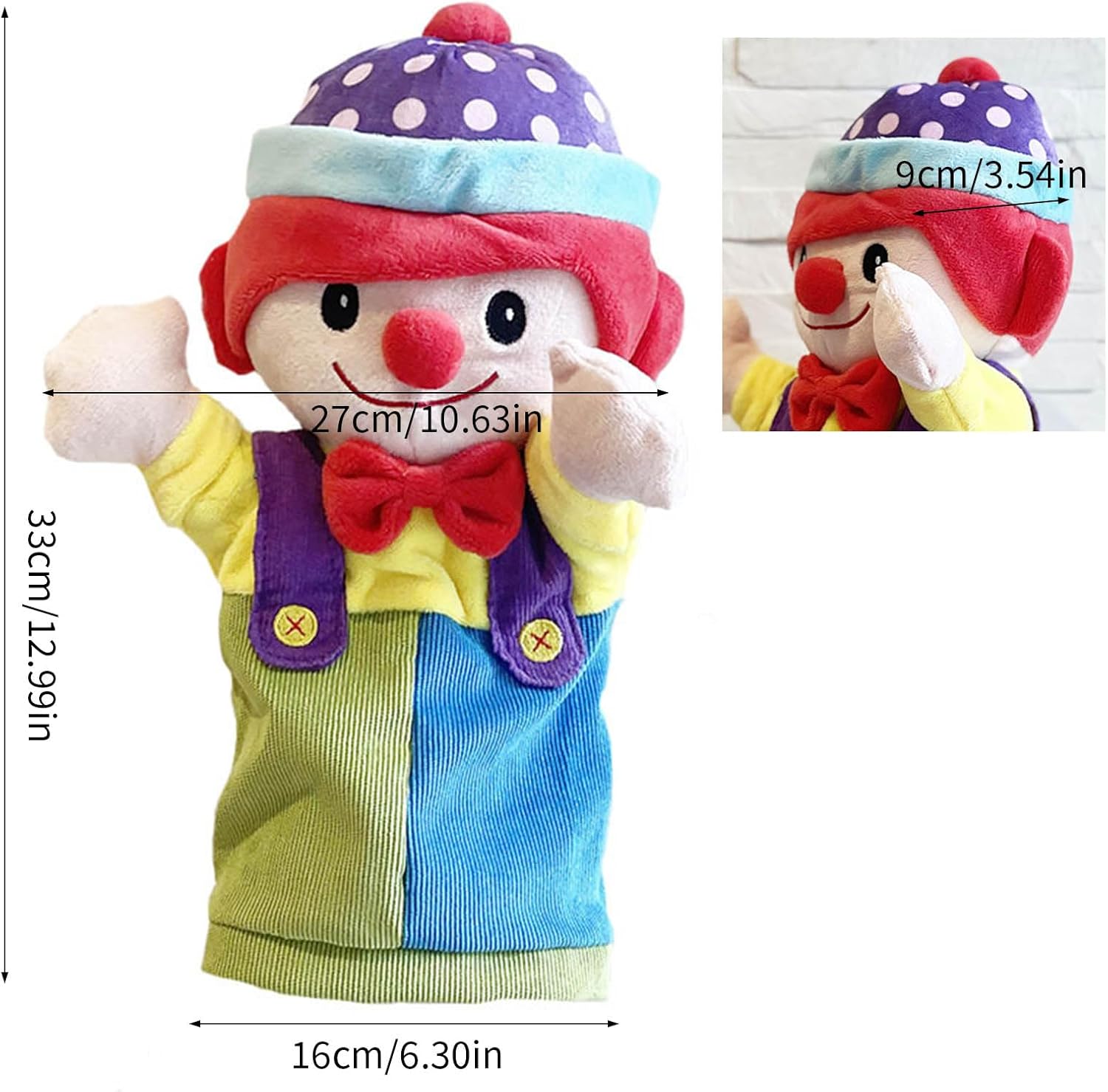 Ideale per insegnanti in età prescolare, genitori e bambini di 3 anni per aumentare la creatività, le competenze linguistiche e l'apprendimento interattivo Stimola il gioco fantasioso e lo sviluppo del vocabolario attraverso scenari del personaggio Giochi di ruolo supportati dall'esperto educativo Marionette da clown altamente realistiche con bella espressione e comandi flessibili per migliorare la narrazione e il gioco di ruolo per spettacoli accattivanti Perfetto per aule, legame familiare o viaggi, il suo design realistico e facile da trasportare per un viaggio Utilizzare morbido cotone PP non tossico e materiali felpati. Questo giocattolo manuale garantisce un tempo di gioco sicuro per pelli sensibili