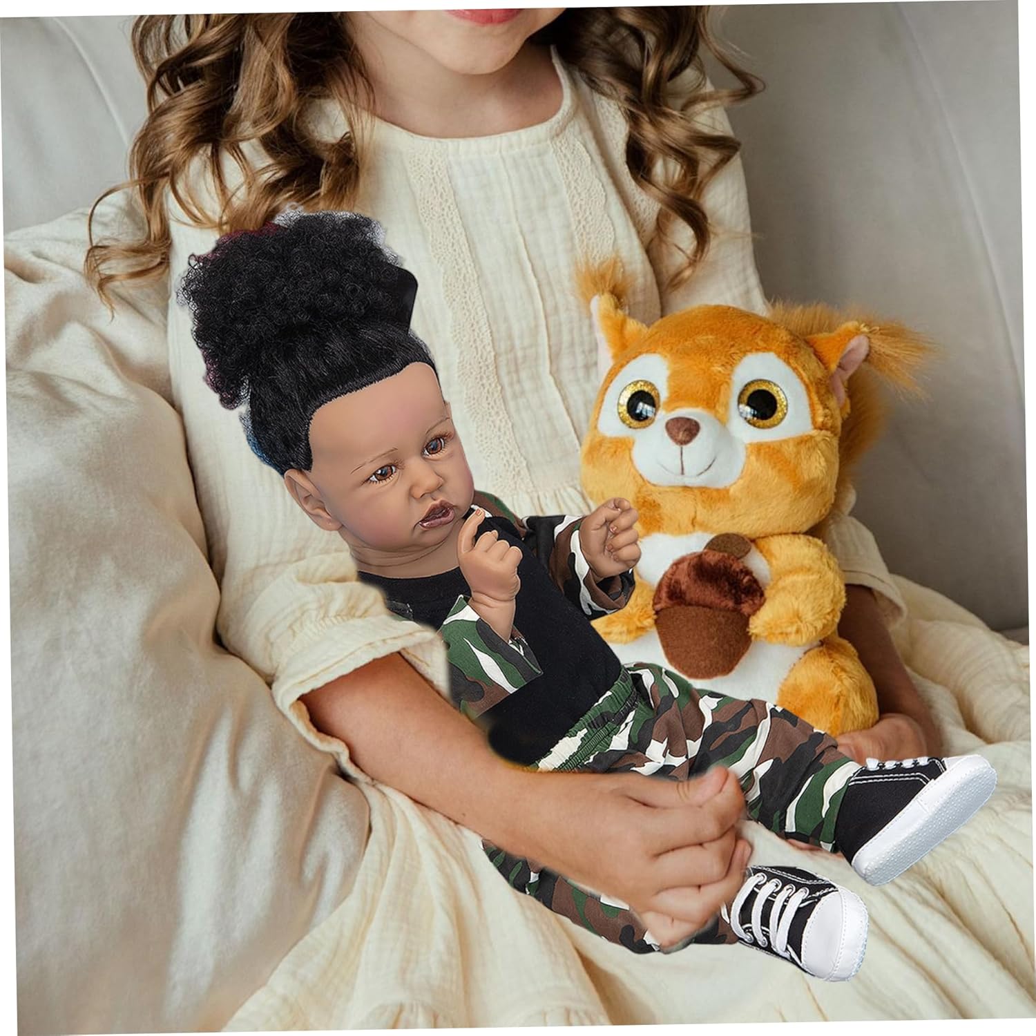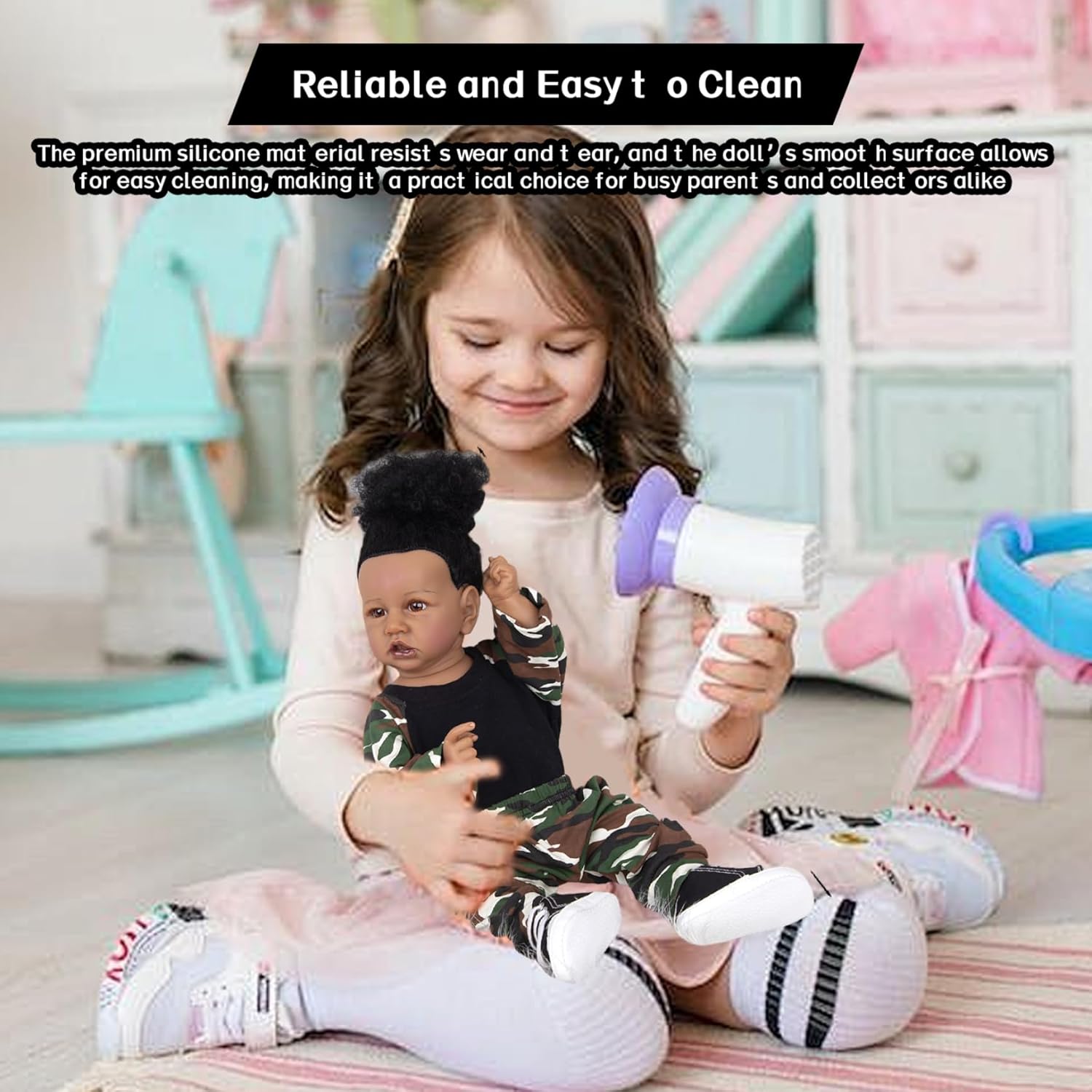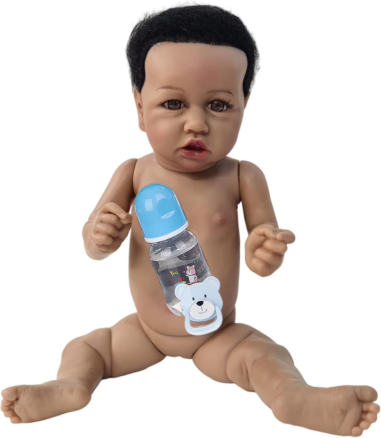 Affidabile e facile da pulire: il materiale in silicone di alta qualità resiste all'usura e la superficie liscia della bambola consente una facile pulizia, rendendola una scelta pratica sia per i genitori impegnati che per i collezionisti Accessori completi inclusi: viene fornito con un ciuccio e un biberon che migliorano il gioco interattivo, incoraggiando comportamenti educativi e rendendo questa bambola artistica da collezione per bambini perfetta per giochi di ruolo fantasiosi Regali perfetti per tutte le occasioni: questa bambola in silicone per tutto il corpo è un regalo ideale per compleanni, vacanze o come aggiunta unica a qualsiasi collezione di bambole, portando calore emotivo e conforto a bambini e appassionati Materiali morbidi e sicuri: realizzata in morbido silicone atossico, questa bambola è delicata al tatto e adatta a tutte le età, garantendo un gioco sicuro e coccoloso imitando la delicata sensazione delle bambole della vita reale Design e consistenza realistici: realizzata in silicone per tutto il corpo di alta qualità, questa bambola da 23 pollici presenta tonalità della pelle scura realistiche ed espressioni facciali realistiche, offrendo un'autentica esperienza da bambola appena nata che delizia sia i collezionisti che i bambini